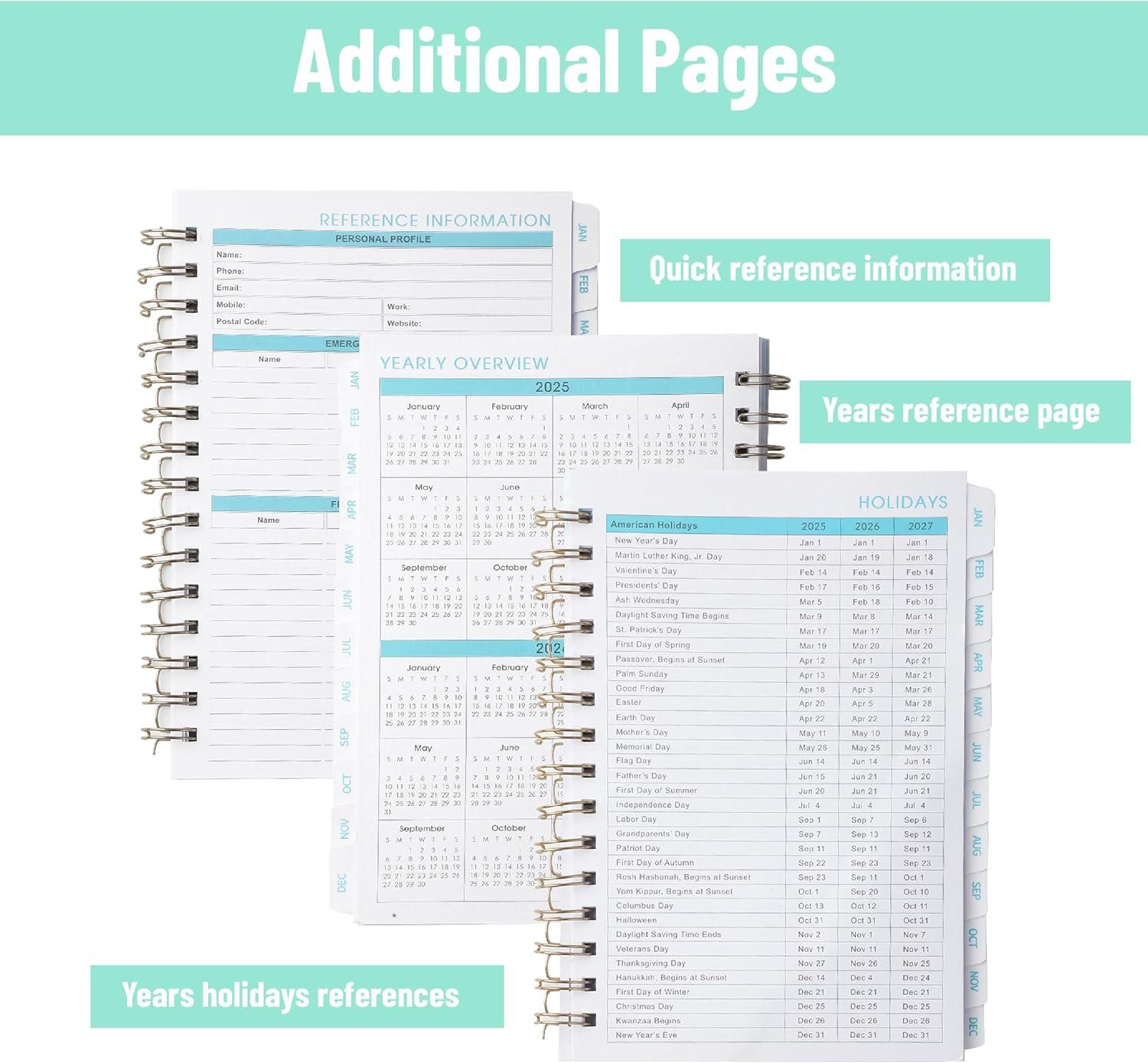 • Measuring 6.4 inches by 8.5 inches, the planner provide ample space for notes, plans, and reminders.