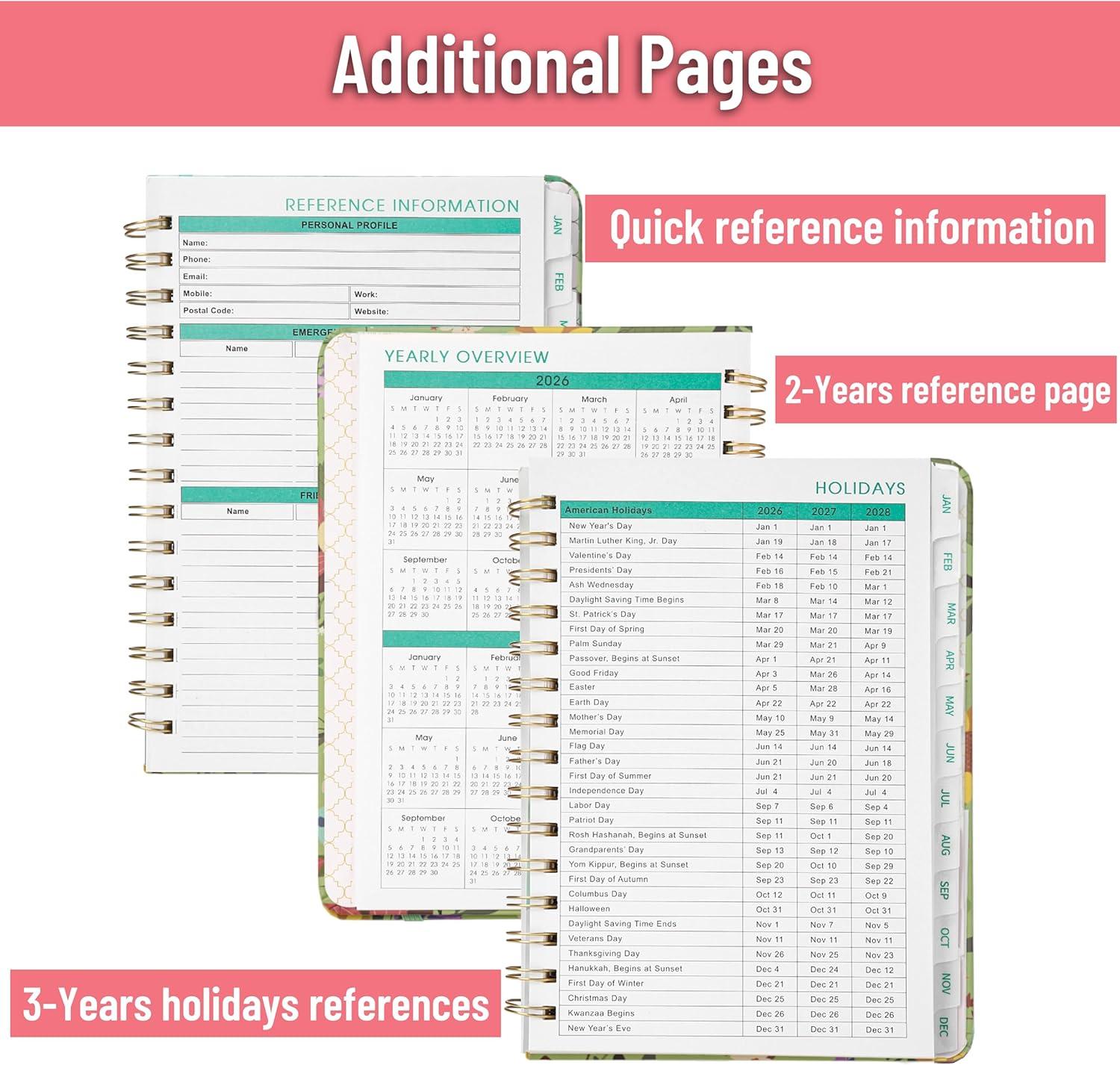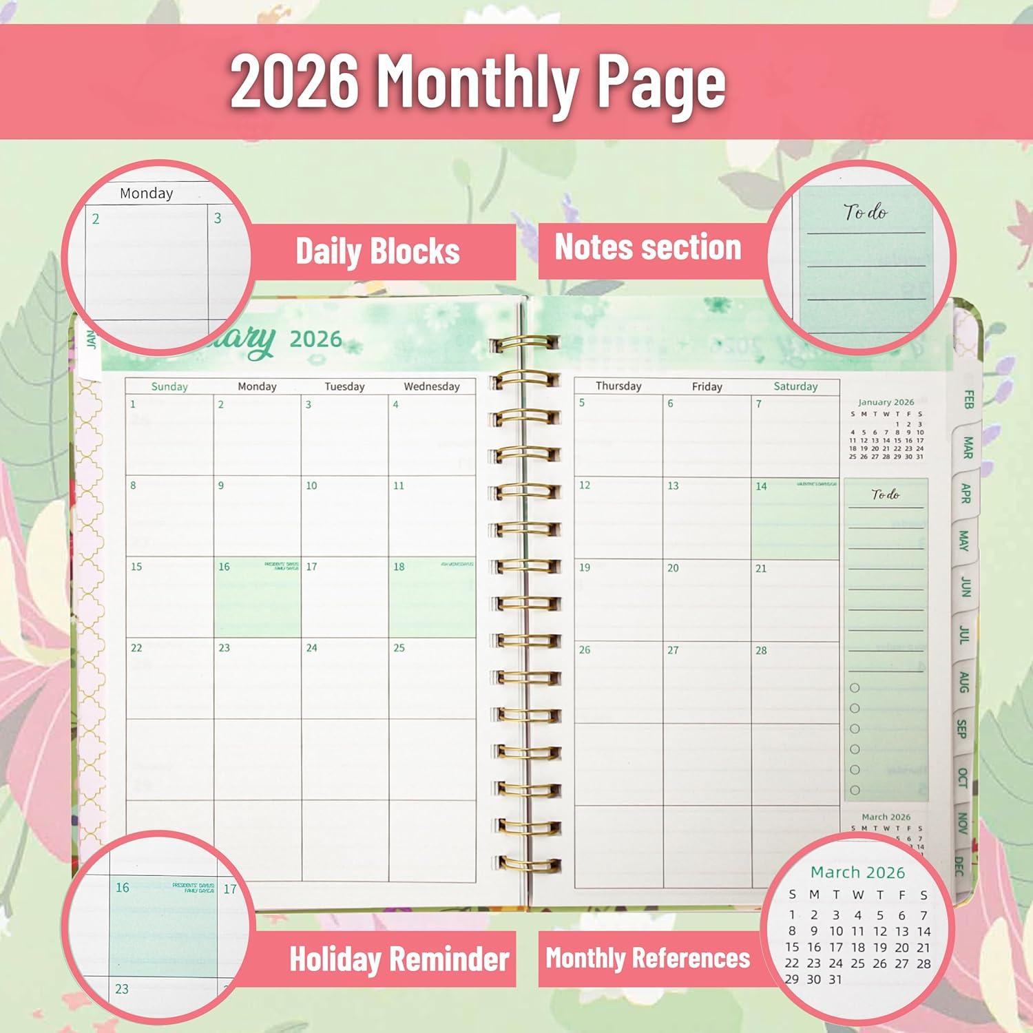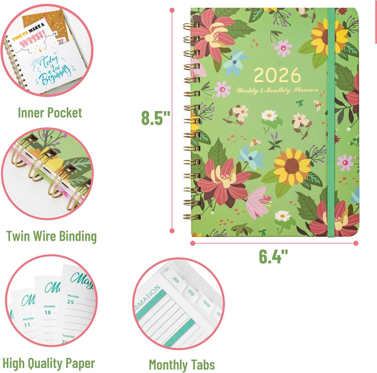 2026 Planner, Weekly and Monthly Calendar Planner for Women, Jan 2026 – Dec 2026, Hardcover Planning Agenda book, Spiral Bound, Inner Pocket, Perfect for School Office Supplies, 6.3″ x 8.5″(Garden Mint)
