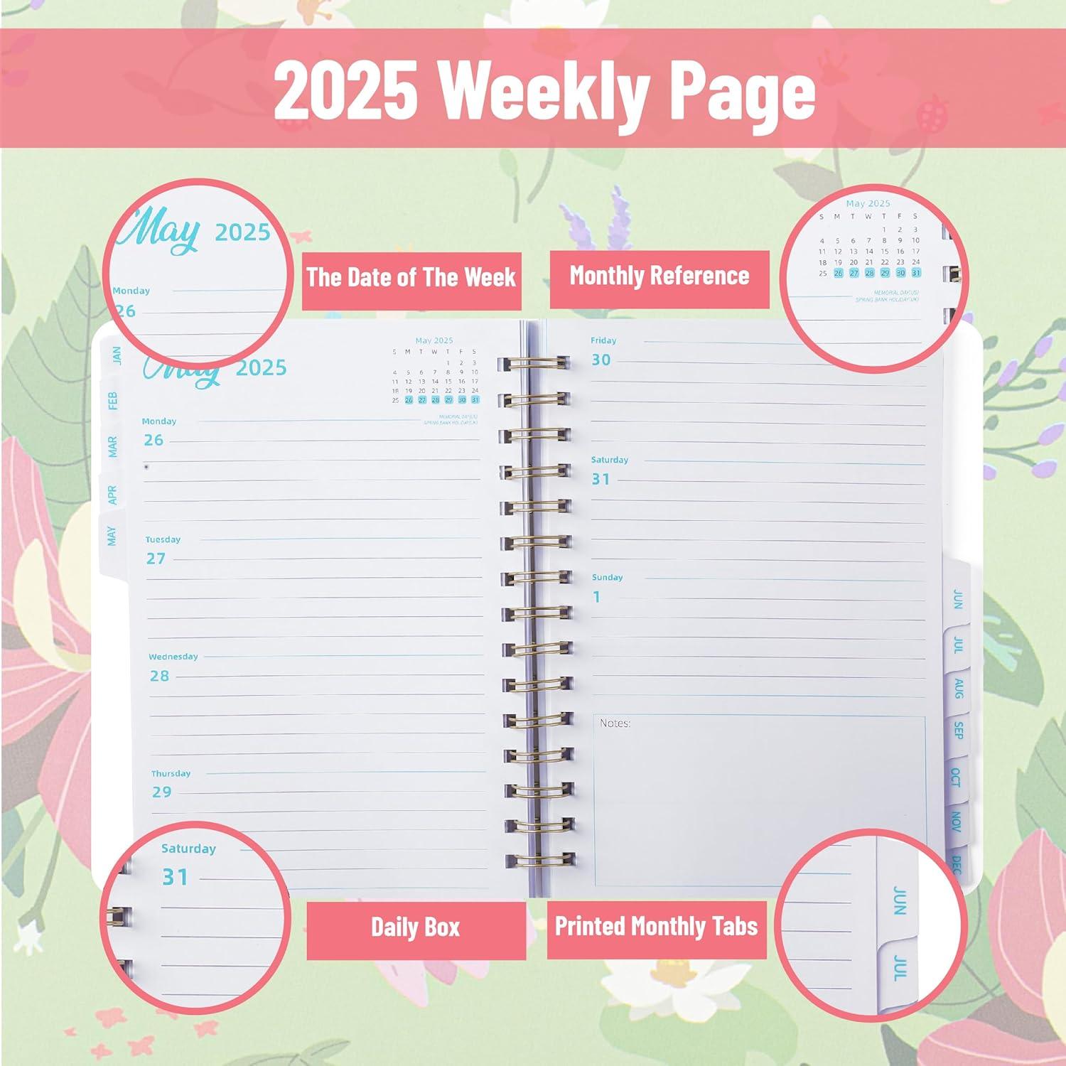 • Measuring 6.4 inches by 8.5 inches, the planner provide ample space for notes, plans, and reminders.