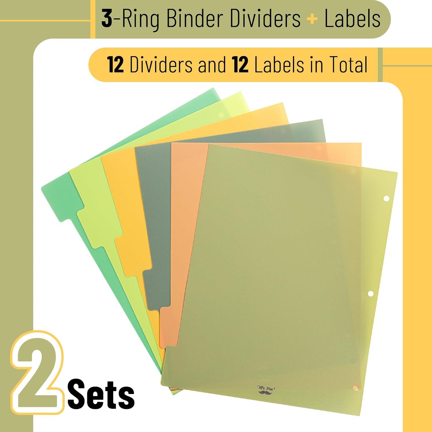 • Mr. Pen 3 ring binder dividers with tabs come as 2 sets of 6 durable plastic dividers, totaling 12 dividers sized to fit standard letter 3-ring binders.