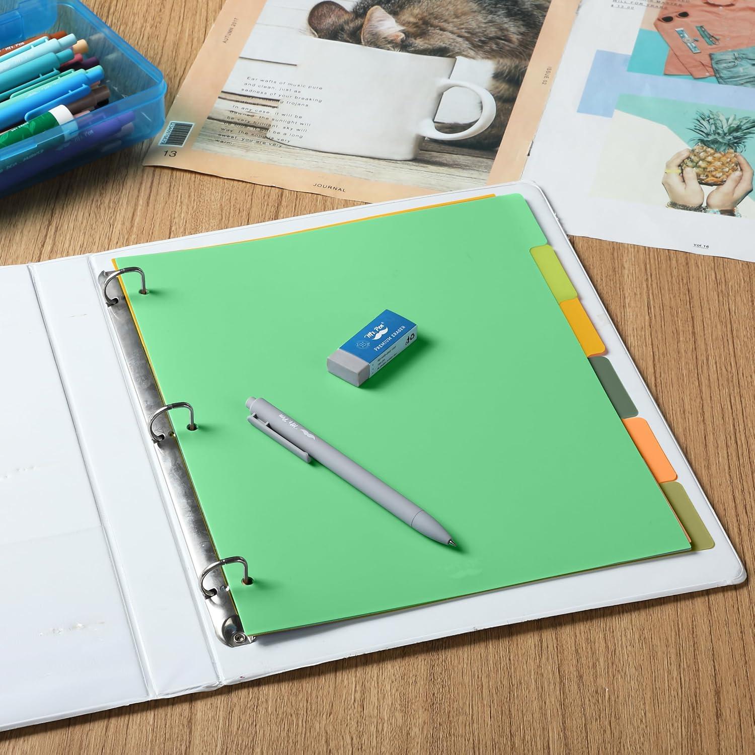 Mr. Pen- 3 Ring Binder Dividers with Tabs, 2 Sets, 6 Pack/Set, Letter Size, Forest Theme, Plastic 6 Tab Dividers for 3 Ring Binder with 12 pcs Labels(Energetic)