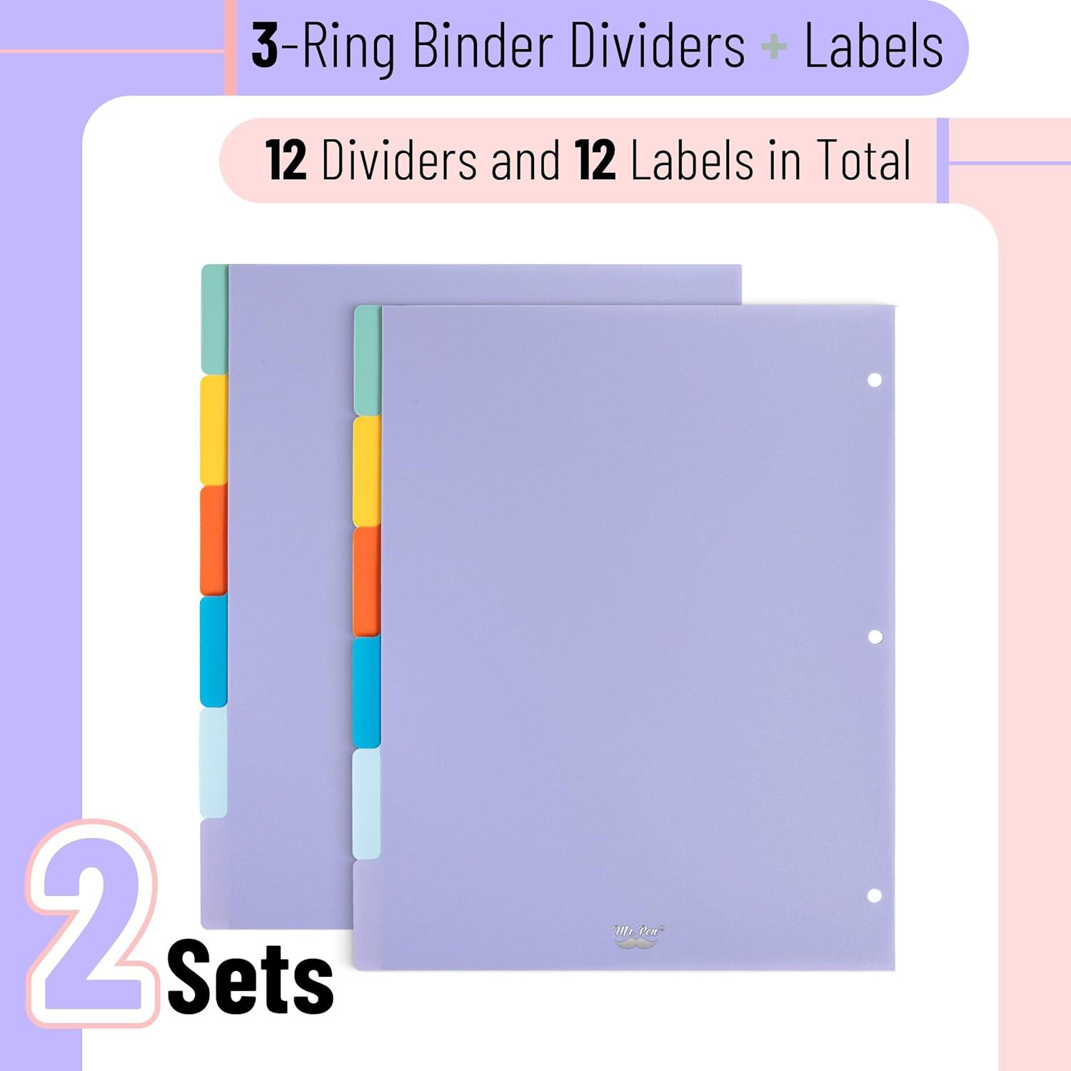• Mr. Pen 3 ring binder dividers with tabs come as 2 sets of 6 durable plastic dividers, totaling 12 dividers sized to fit standard letter 3-ring binders.