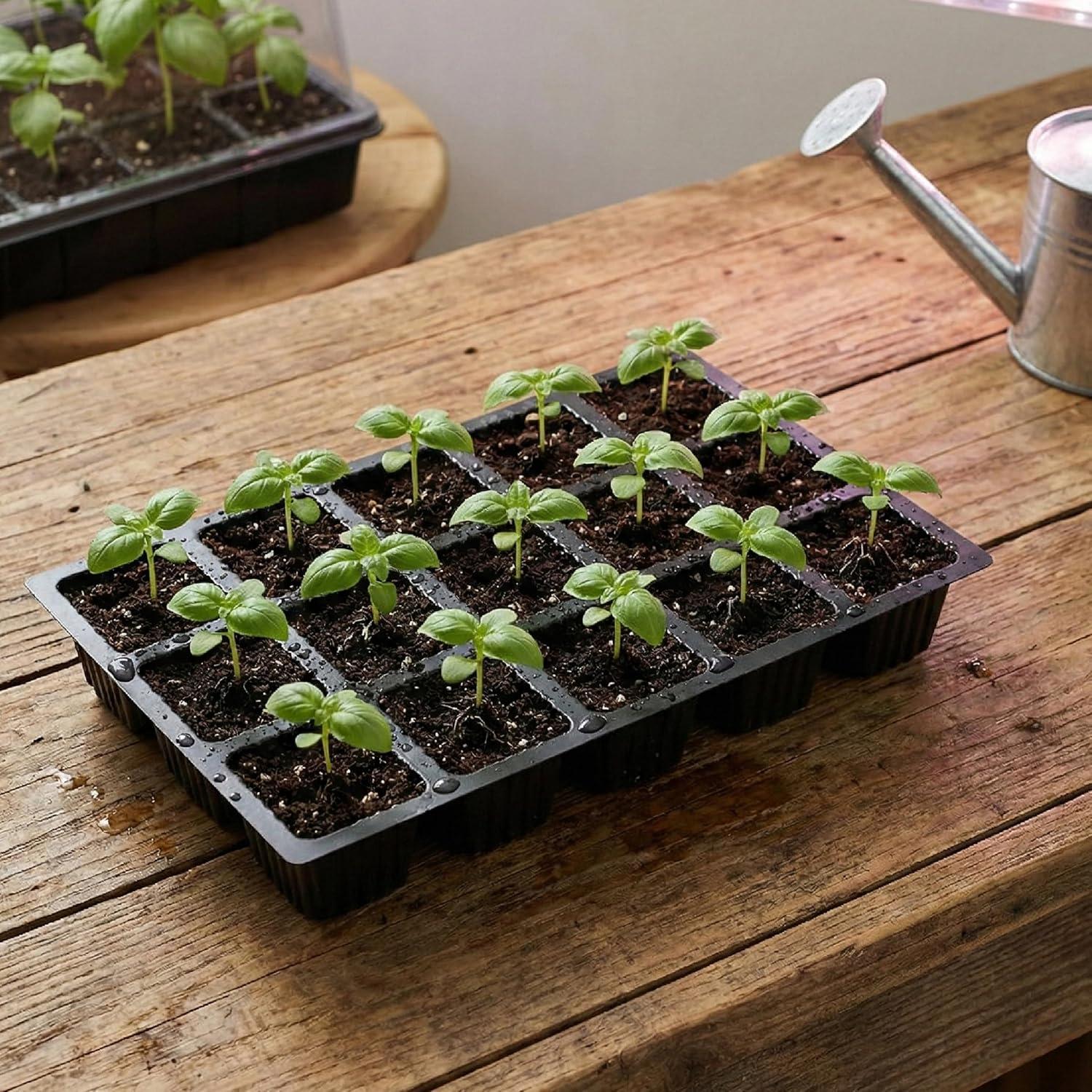 Each 15-cell tray includes individual cells with bottom drain holes to support healthy drainage and reduce the risk of root overwatering.
