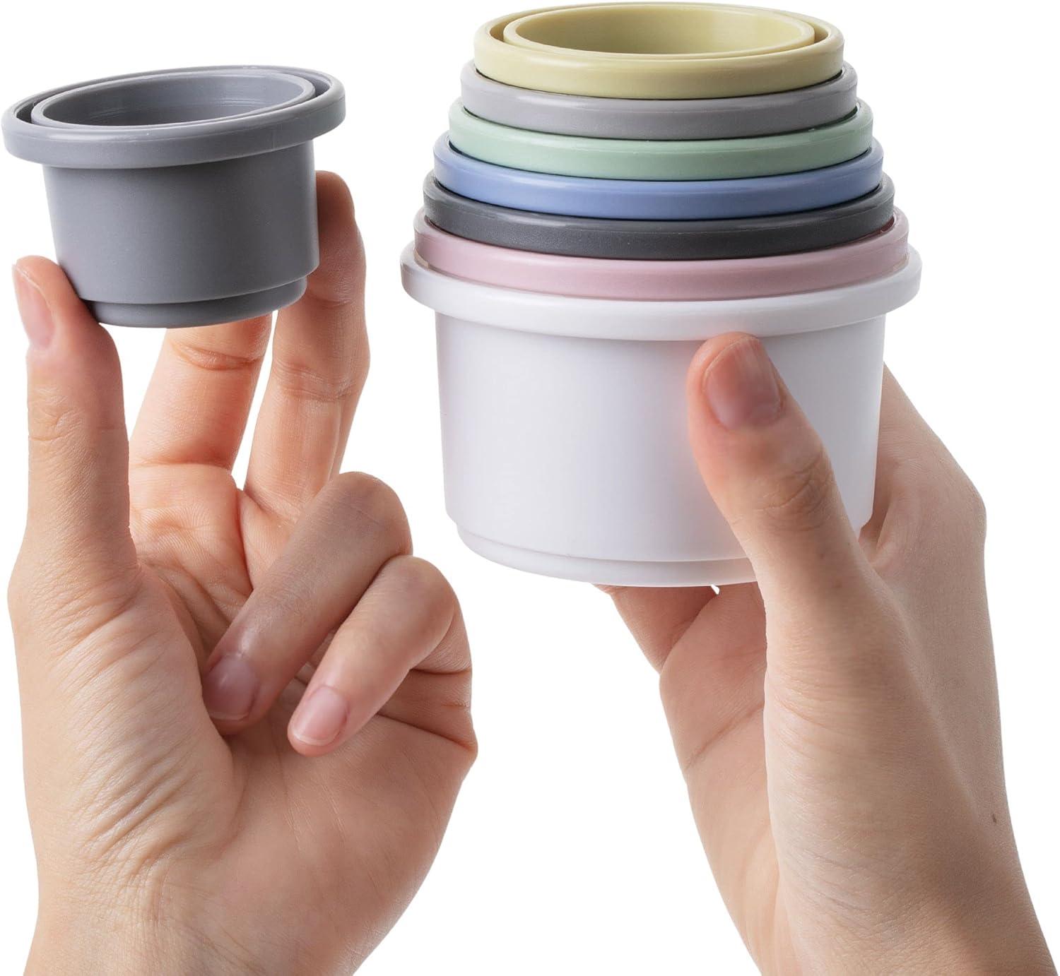 This stacking cup toy set can increase parent-child interaction and improve children's learning skills and imagination. The lightweight and compact design makes them travel-friendly.