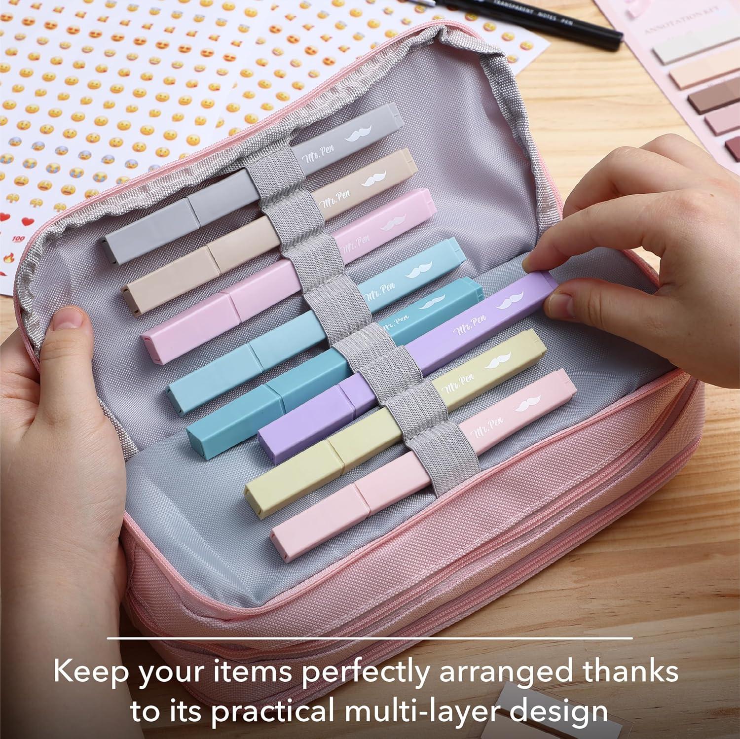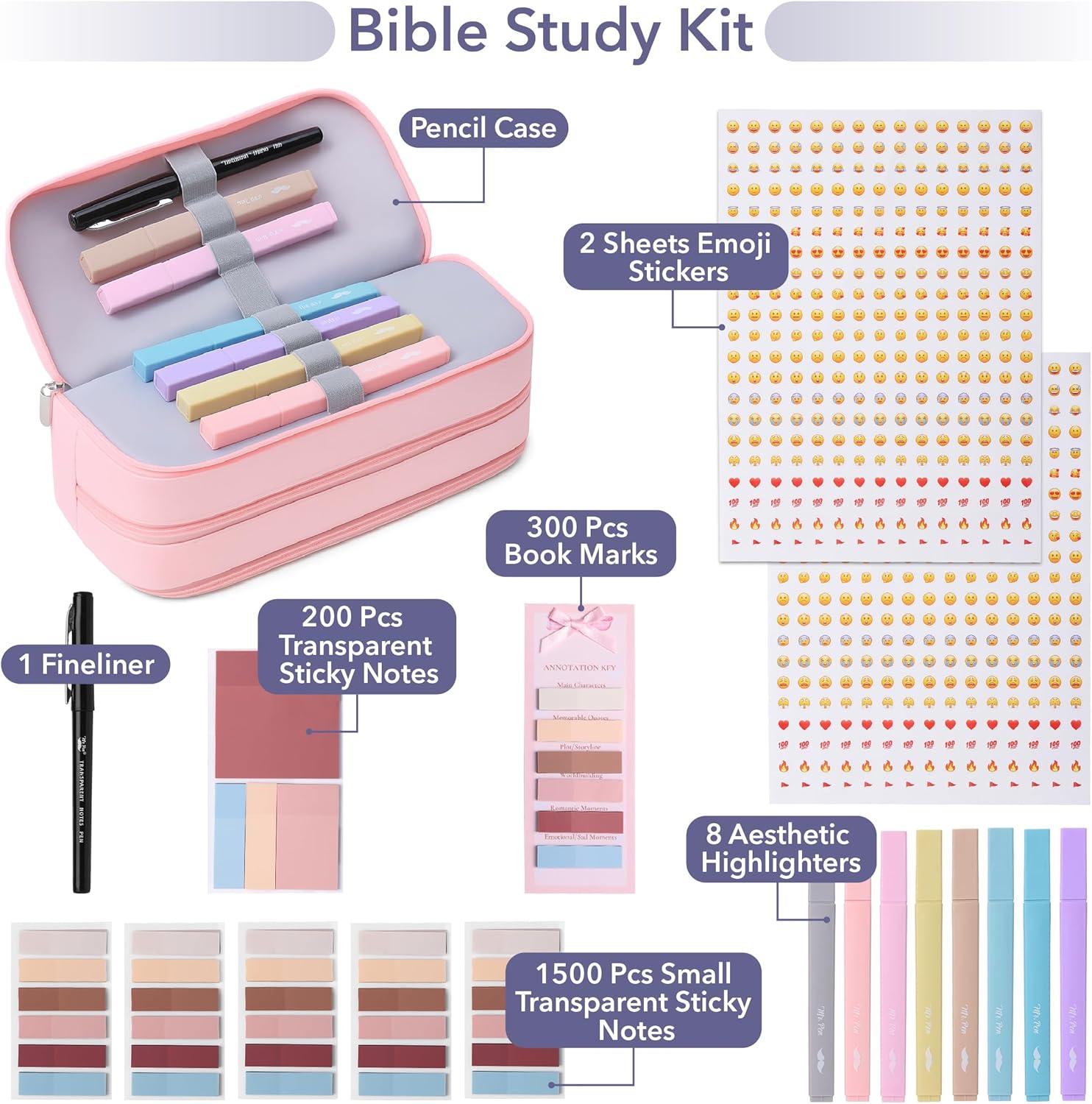 - Mr. Pen Bible study kit includes 8 aesthetic highlighters, a fineliner pen, transparent sticky notes, emoji stickers, and a pink pencil case—perfect for enhancing your Bible journaling experience.