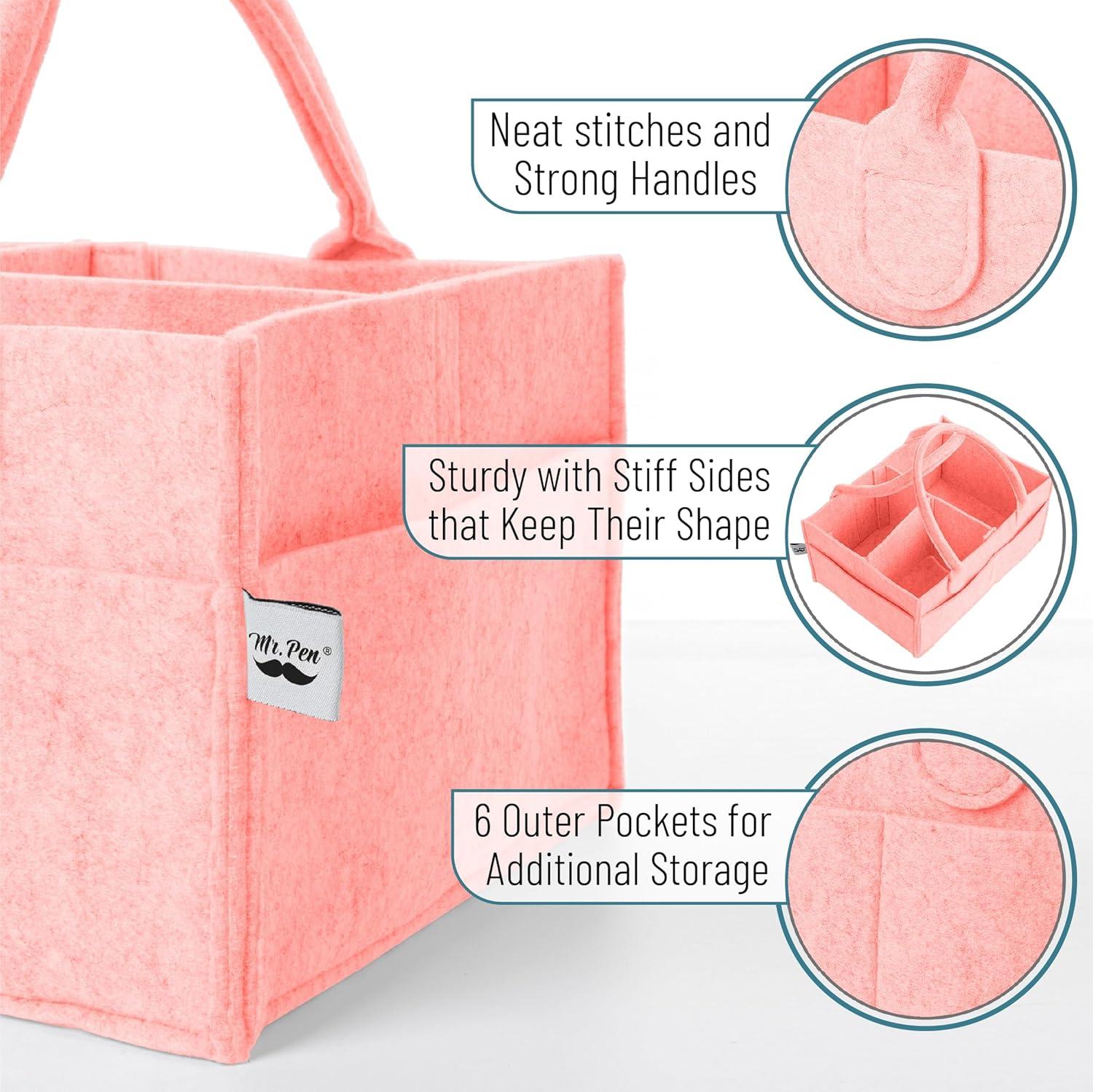 Mr. Pen- Baby Diaper Caddy Organizer, 2 Pack, Blue Inside, Large Baby Caddy Organizer with Handle, Collapsible & Portable(Pink)