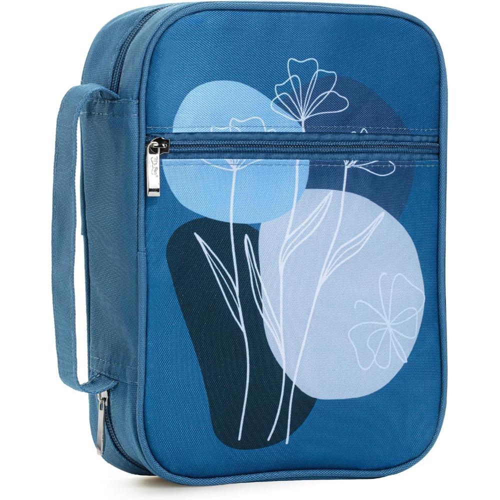 Mr. Pen- Bible Cover Case, Carrying Book Case with Durable Handle and Zippered Pocket, Bible Protective Church Bag for Men & Women, Christian Gifts, Dark Green(Blue Bloom)