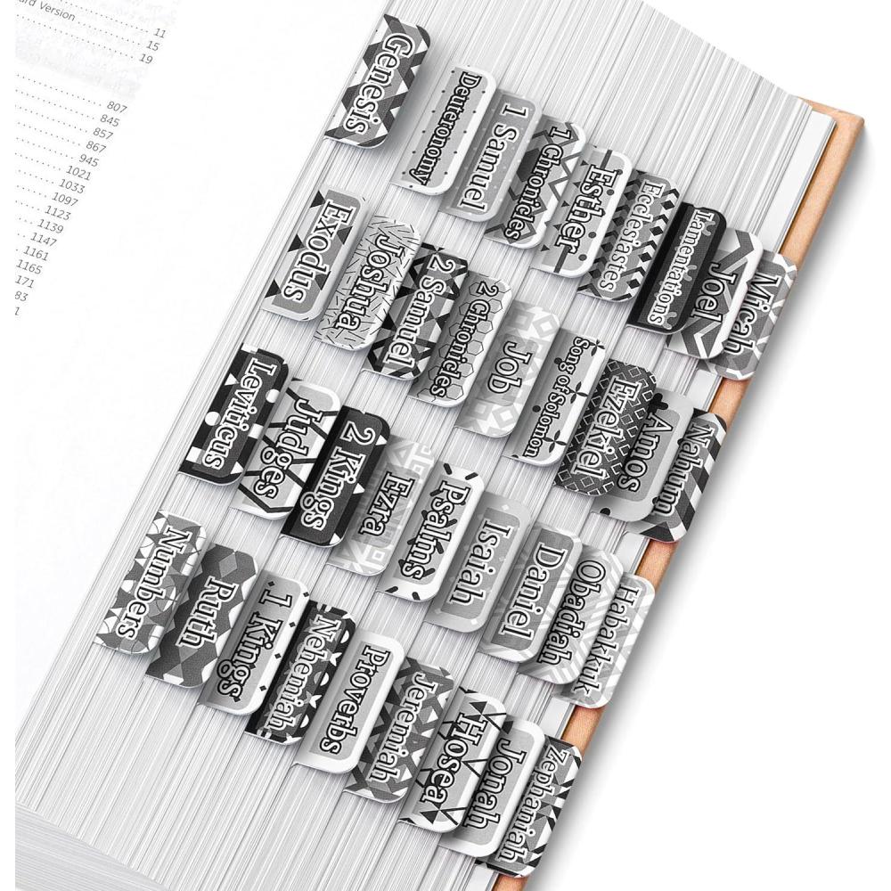 Mr. Pen- Bible Tabs, 75 pcs, Abstract, Gold Foil Lettering, Laminated Bible Tabs for Women and Men(Black & White Enigma)
