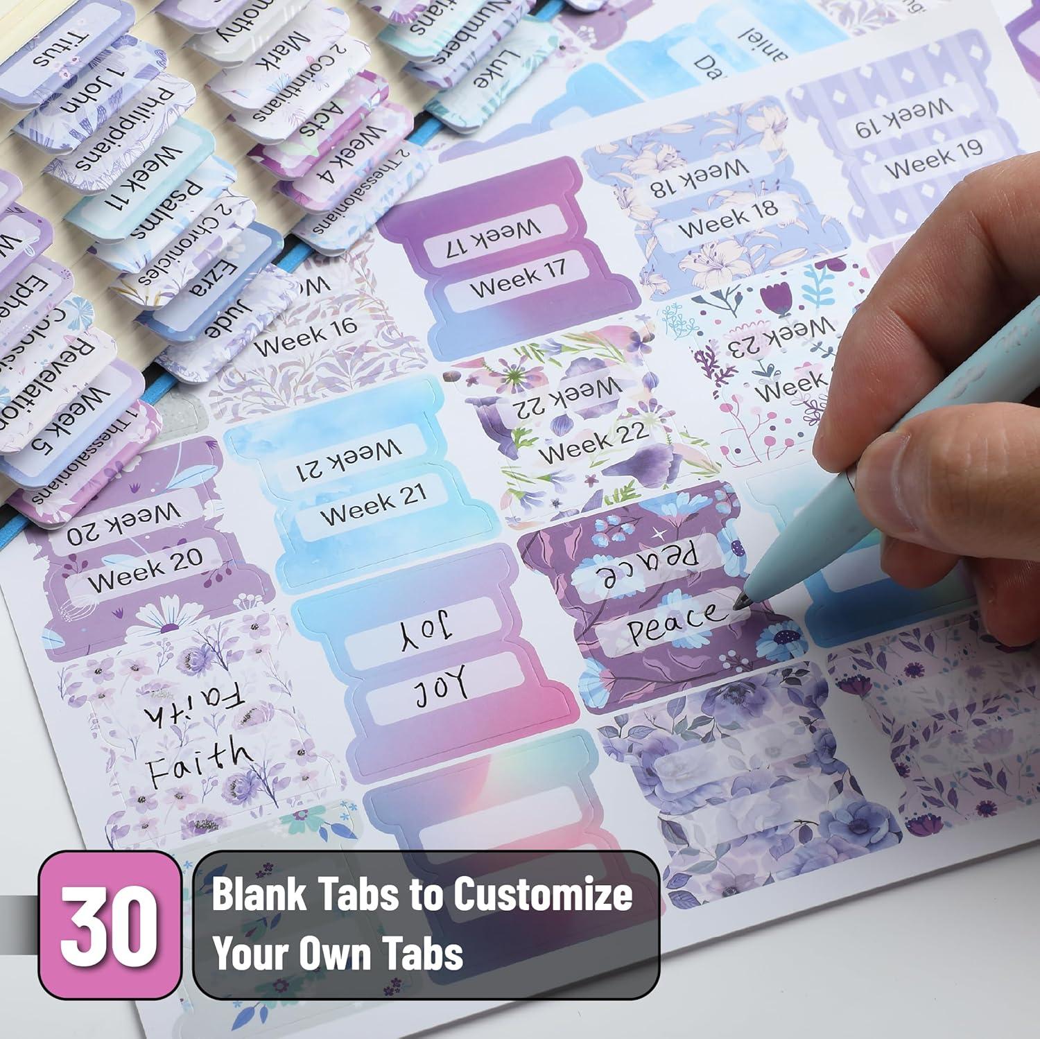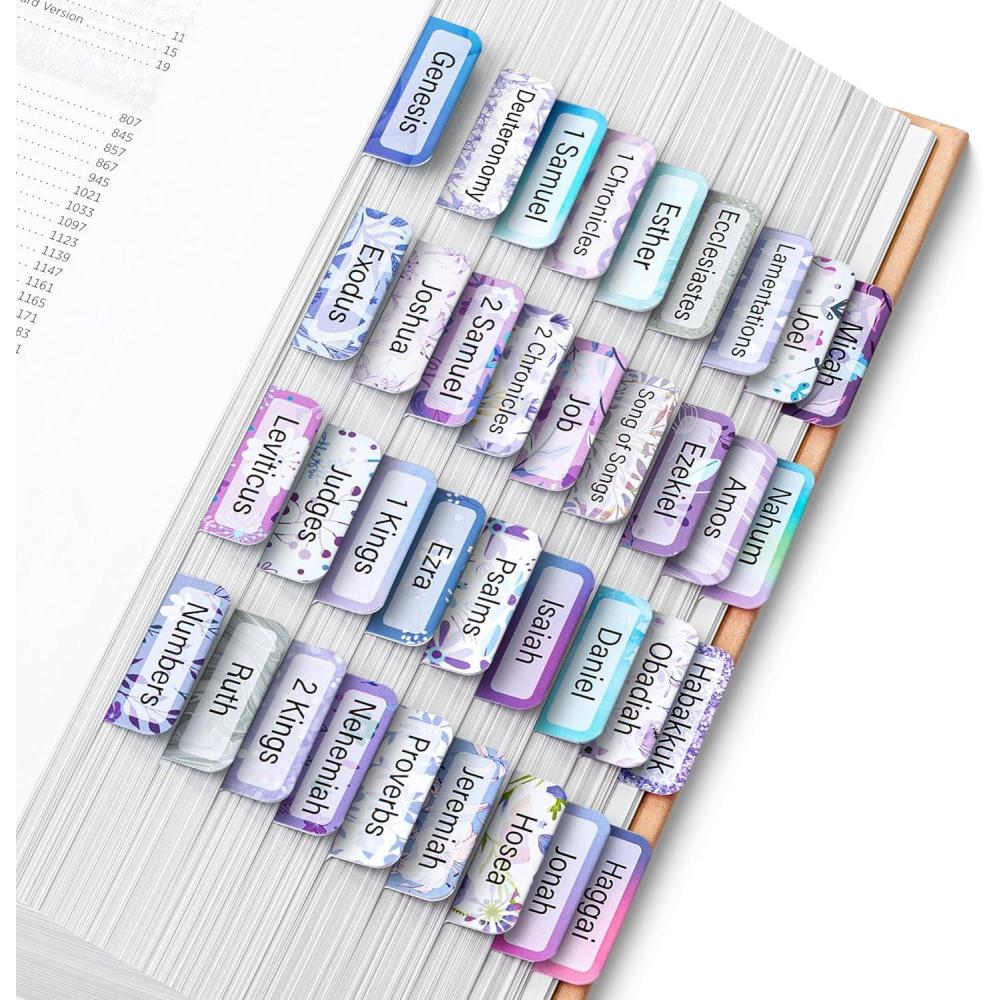• Make your Bible study more organized and inspiring with Mr. Pen set of 75 Bible tabs! Featuring an assortment of 39 Old Testament books, 27 New Testament books, and 9 blank tabs spread across five sheets.