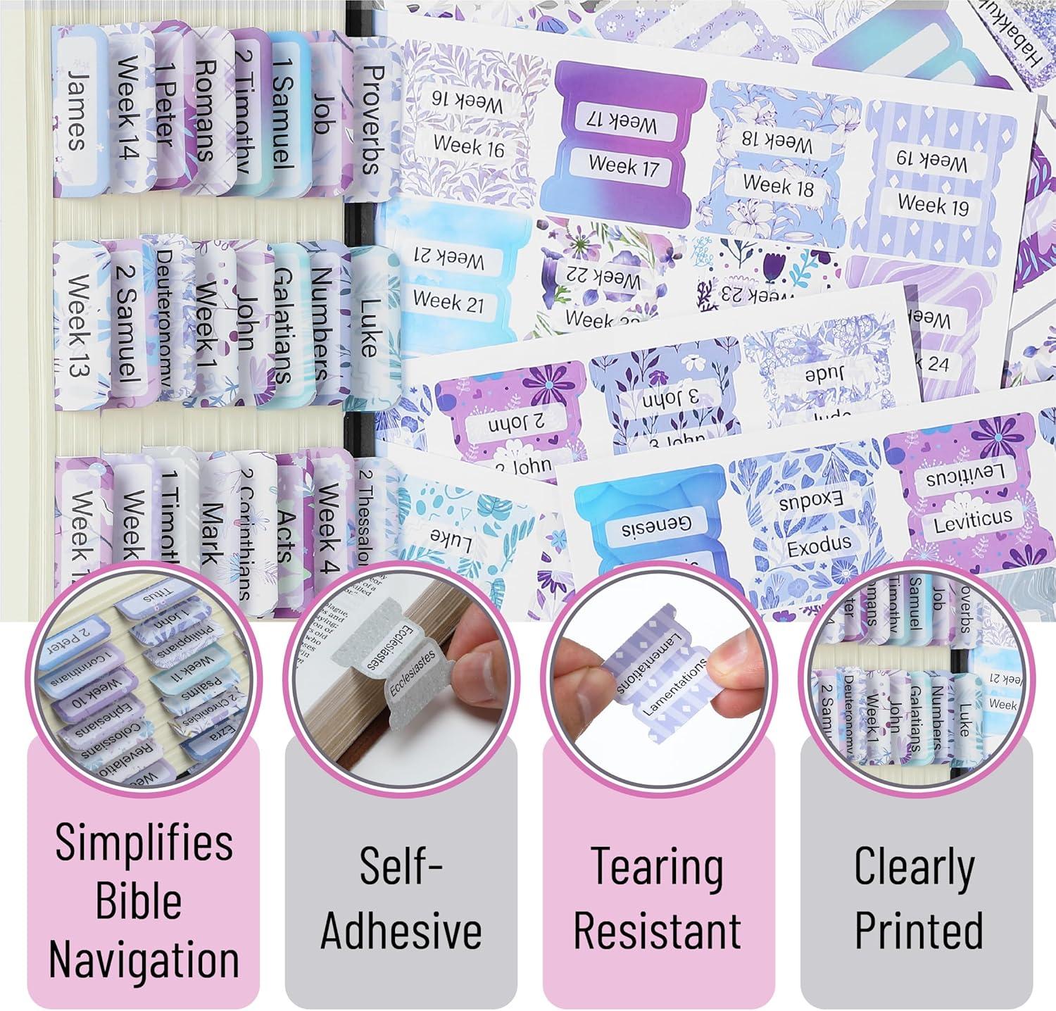 • With their large, clear font and bright printing, these Bible tabs offer a convenient organizational tool for those looking to engage in Bible study or journaling.