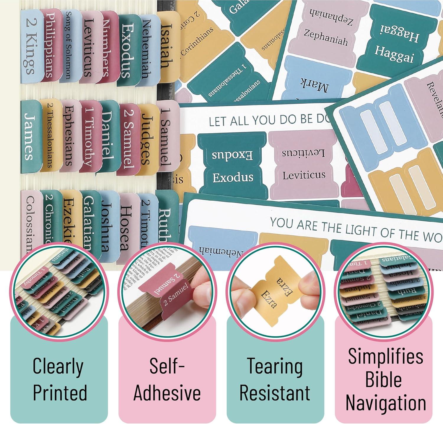 • With their large, clear font and bright printing, these Bible tabs offer a convenient organizational tool for those looking to engage in Bible study or journaling.