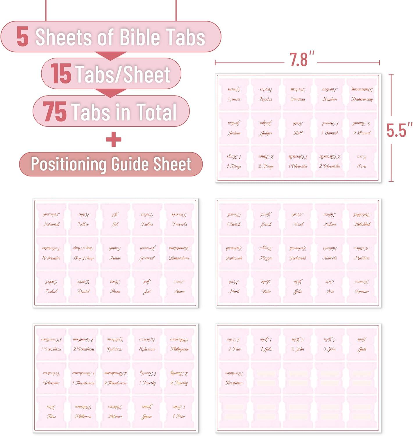 Make your Bible study more organized and inspiring with Mr. Pen set of 75 Bible tabs! Featuring an assortment of 39 Old Testament books, 27 New Testament books, and 9 blank tabs spread across five sheets.
