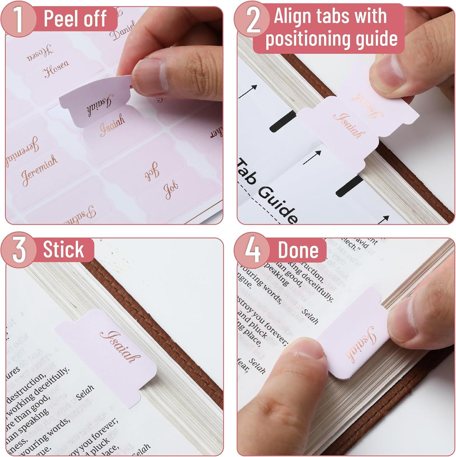 • With the provided alignment guide, applying Bible indexing tabs has never been easier. These pre-cut tabs are designed to be quickly and easily folded for your convenience.