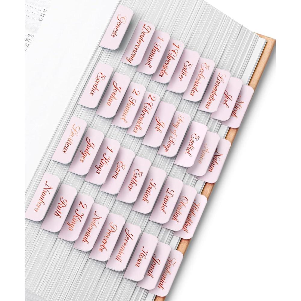 Mr. Pen- Bible Tabs, 75 pcs, Shades of Gray, Gold Foil Embossed Lettering, Laminated Bible Tabs for Women and Men(Baby Pink)