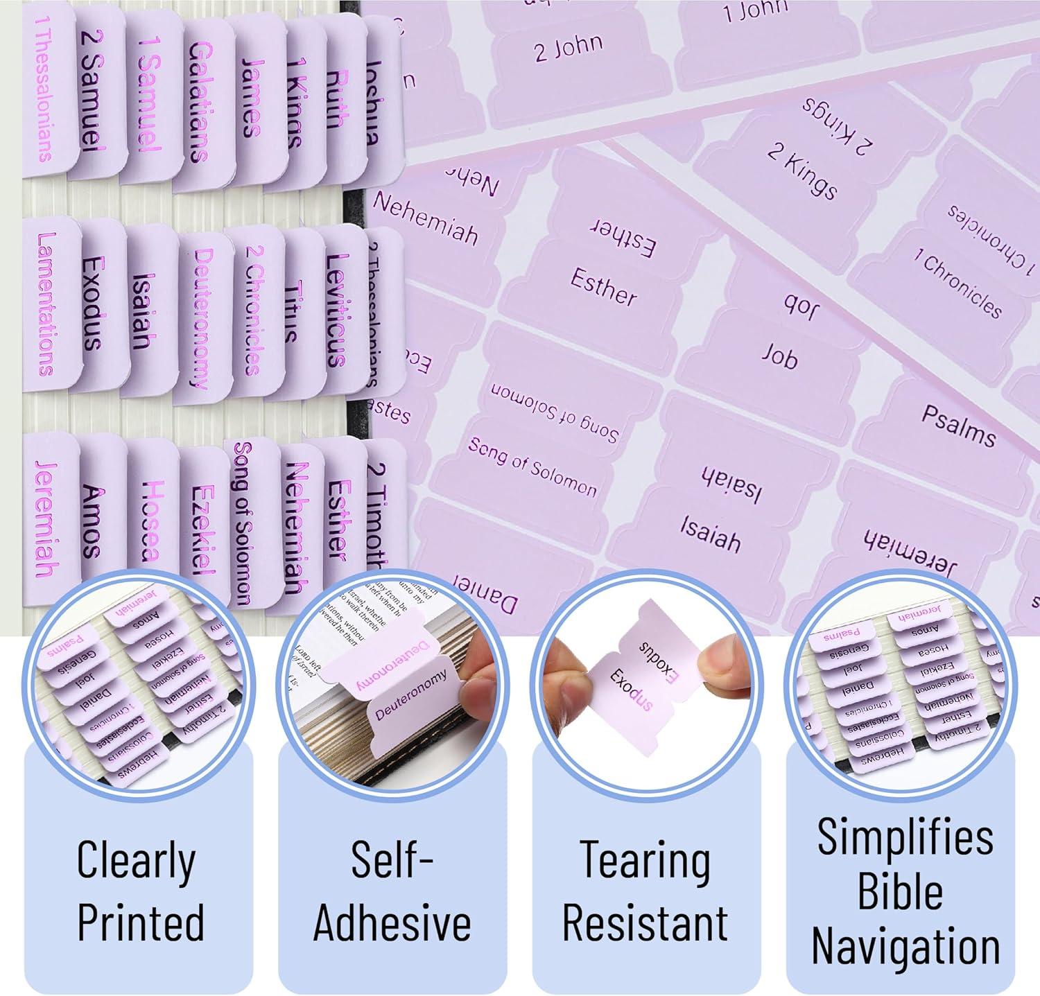 • With their large, clear font and bright printing, these Bible tabs offer a convenient organizational tool for those looking to engage in Bible study or journaling.