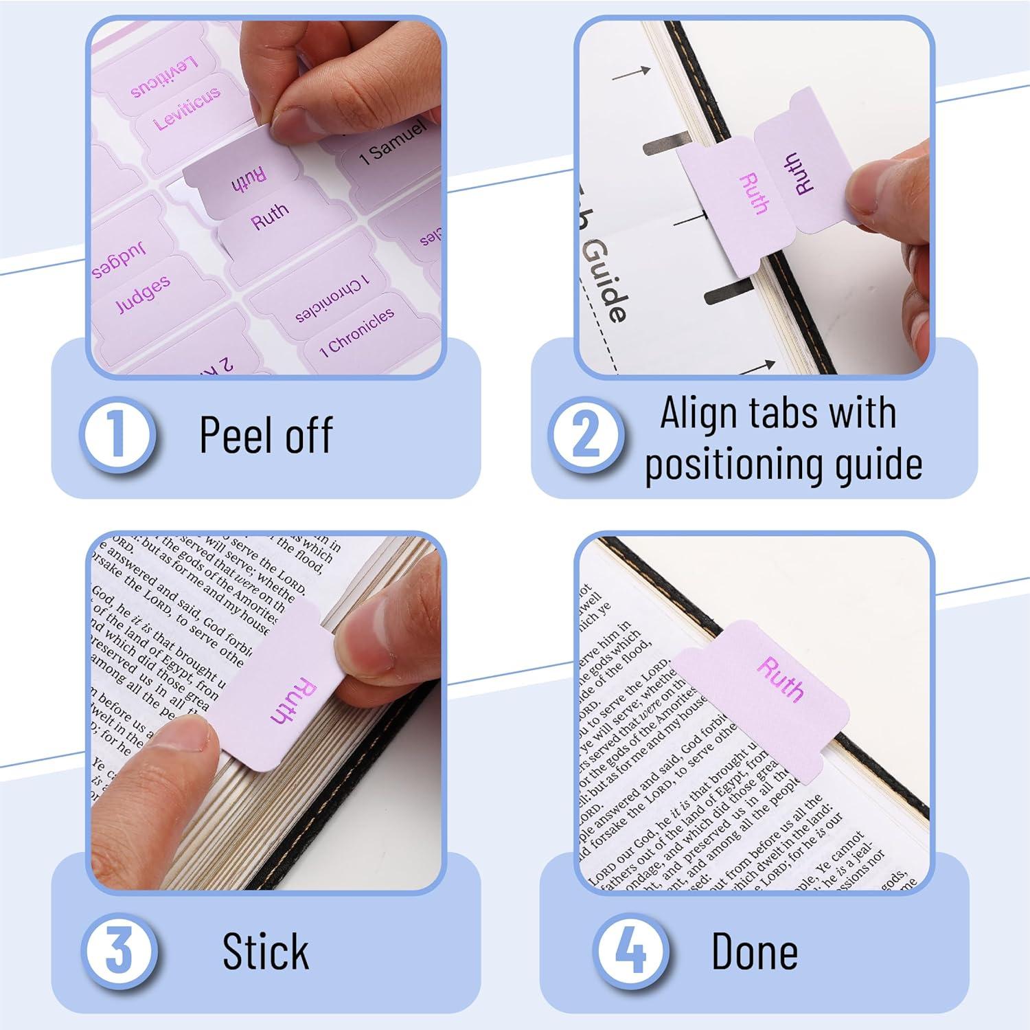 • With the provided alignment guide, applying Bible indexing tabs has never been easier. These pre-cut tabs are designed to be quickly and easily folded for your convenience.