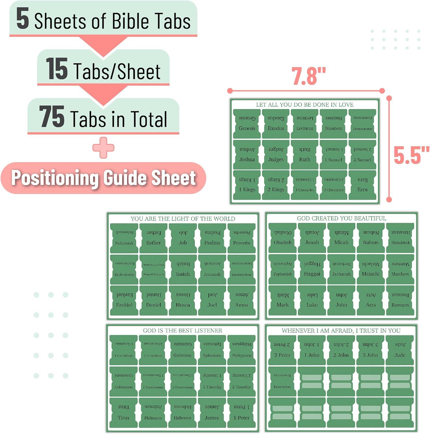 • Make your Bible study more organized and inspiring with Mr. Pen set of 75 Bible tabs! Featuring an assortment of 39 Old Testament books, 27 New Testament books, and 9 blank tabs spread across five sheets.