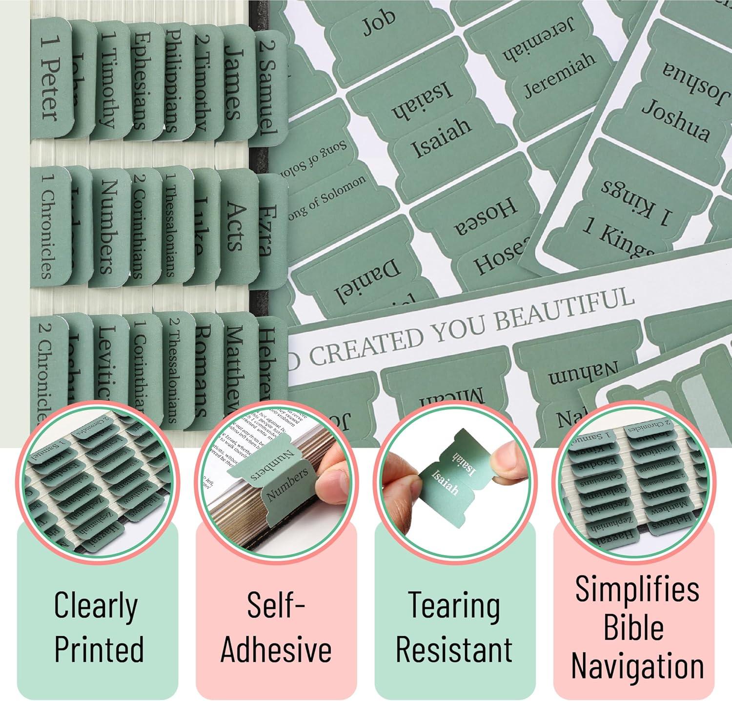 • With their large, clear font and bright printing, these Bible tabs offer a convenient organizational tool for those looking to engage in Bible study or journaling.