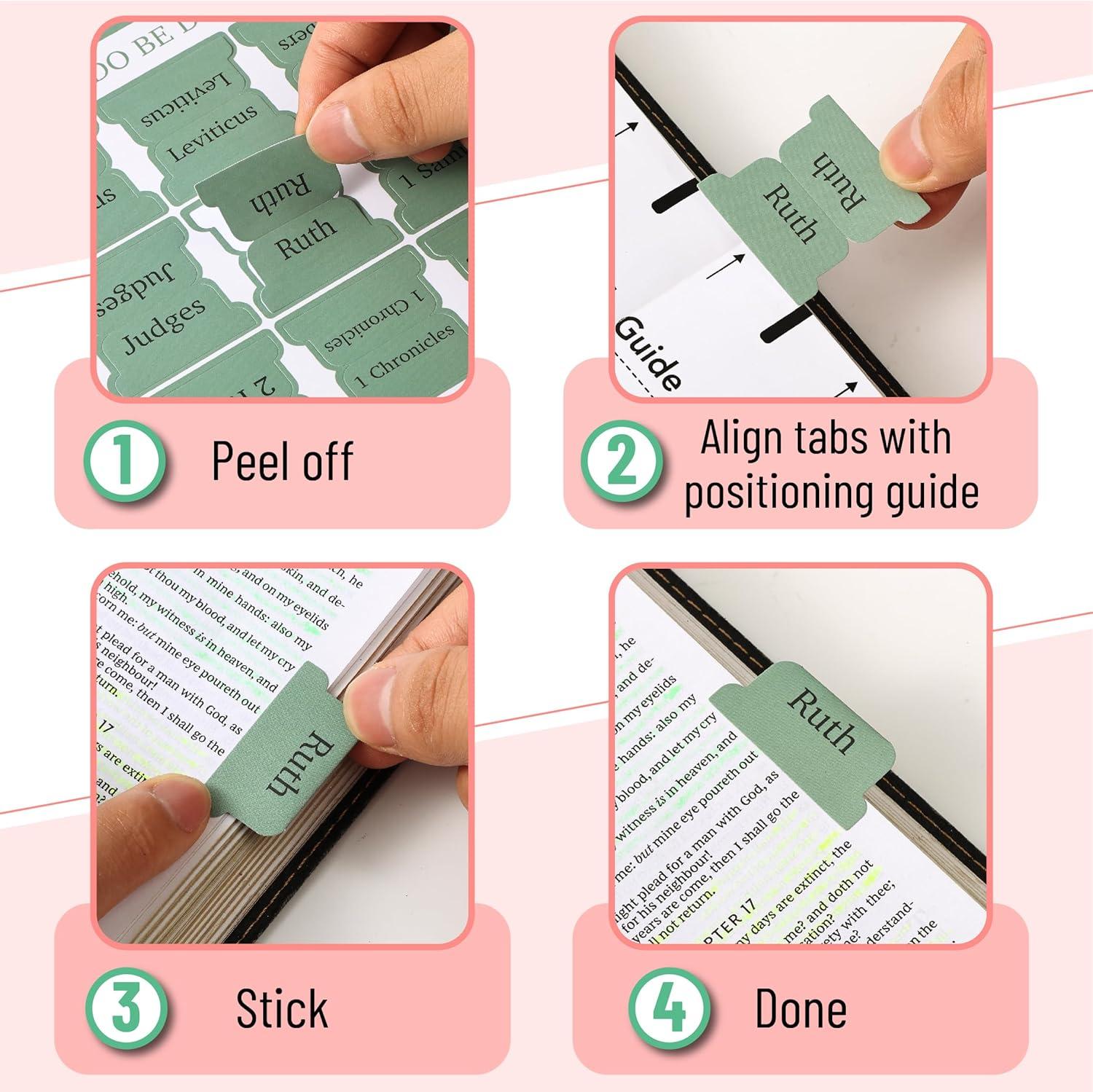 • With the provided alignment guide, applying Bible indexing tabs has never been easier. These pre-cut tabs are designed to be quickly and easily folded for your convenience.