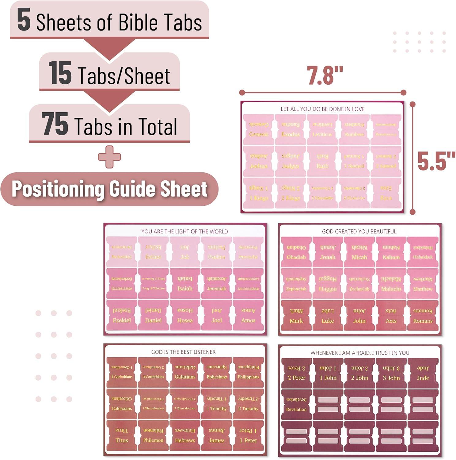 • Make your Bible study more organized and inspiring with Mr. Pen set of 75 Bible tabs! Featuring an assortment of 39 Old Testament books, 27 New Testament books, and 9 blank tabs spread across five sheets.