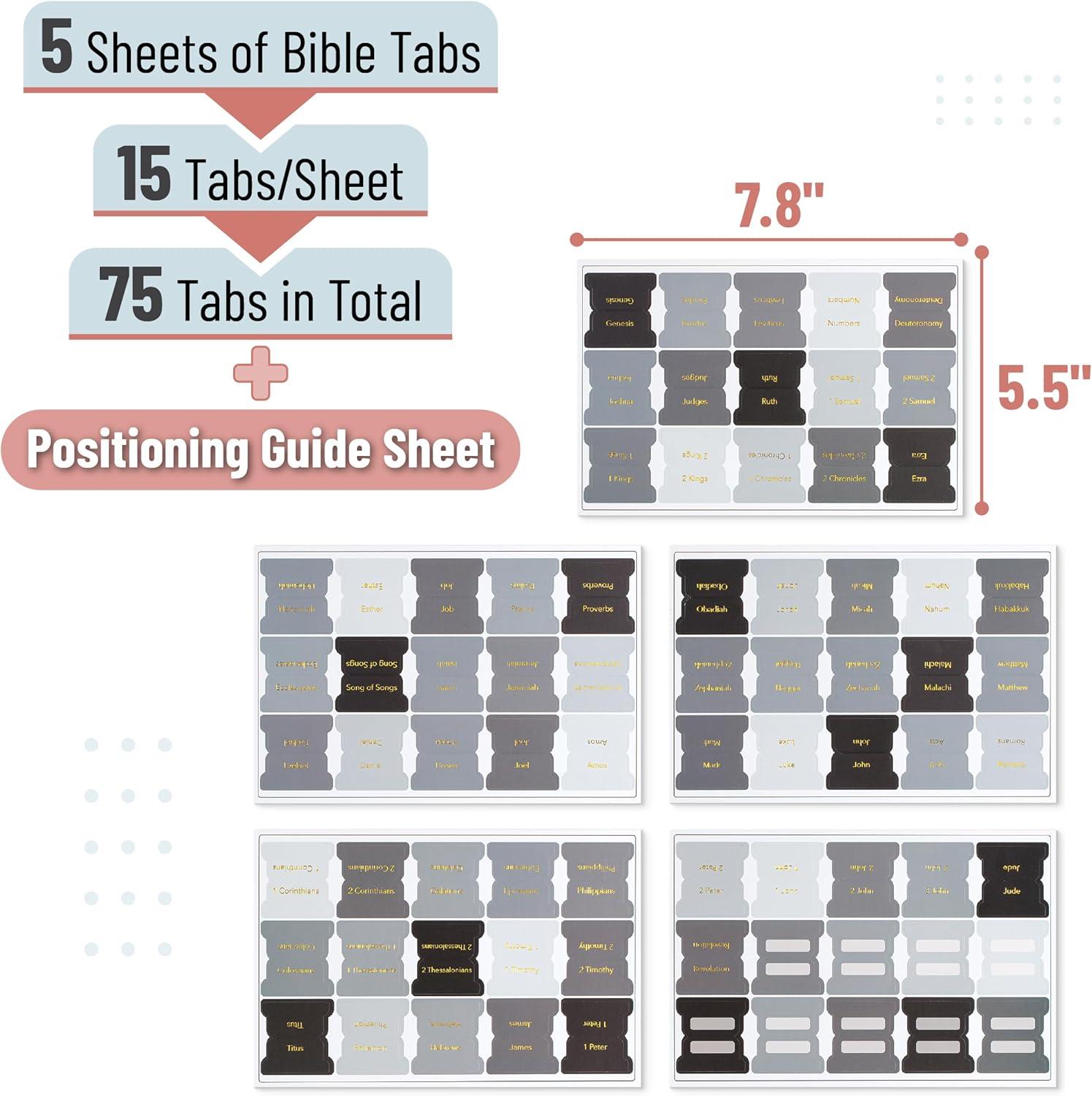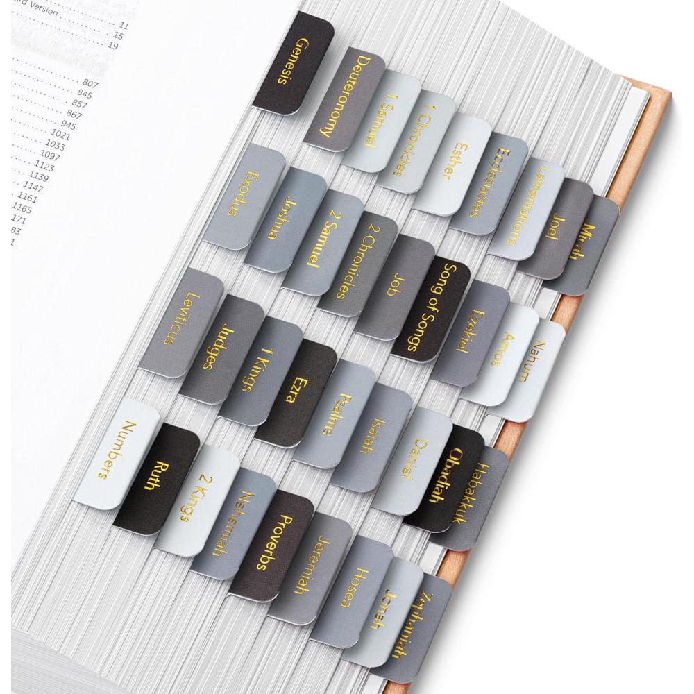 Mr. Pen- Bible Tabs, 75 pcs, Shades of Gray, Gold Foil Embossed Lettering, Laminated Bible Tabs for Women and Men(White)