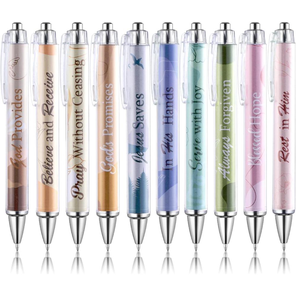 Mr. Pen ballpoint pen set includes 10 beautifully designed pens, each featuring motivational and faith-based messages to inspire you throughout the day.