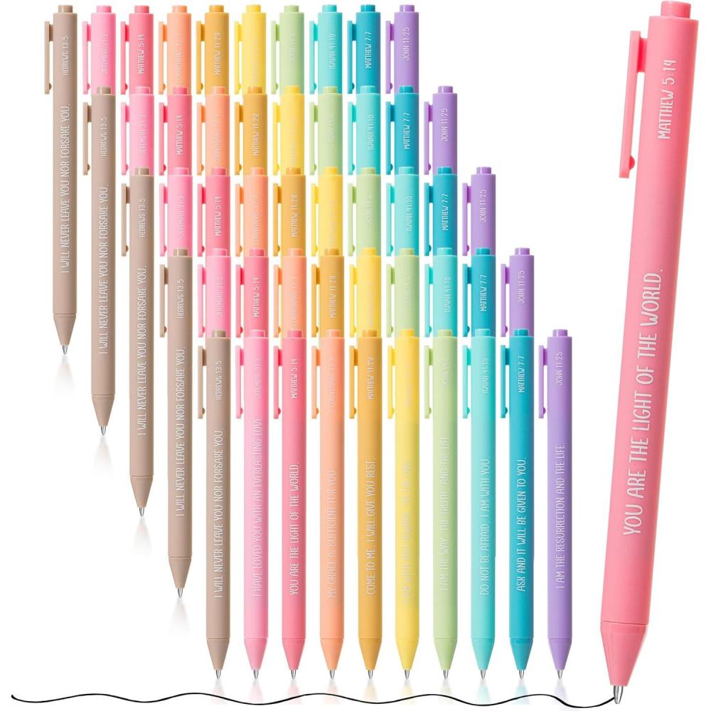Mr. Pen Christian pen set includes 50 ballpoint pens with smooth black ink and inspirational Bible verses printed on each one, perfect for daily encouragement and thoughtful gifting.