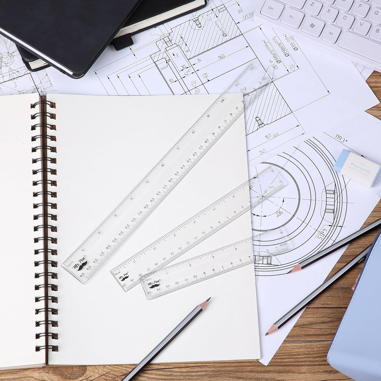 Mr. Pen clear ruler set includes 3 transparent rulers with both metric and imperial measurements, making it ideal for a variety of uses at school, home, or the office.