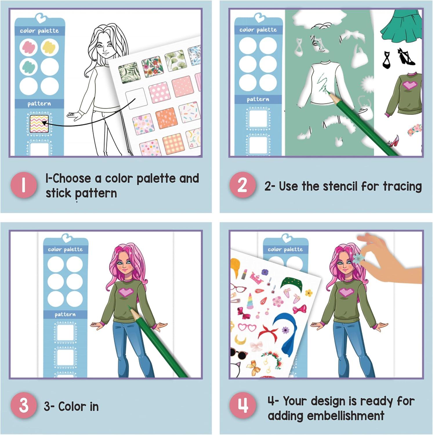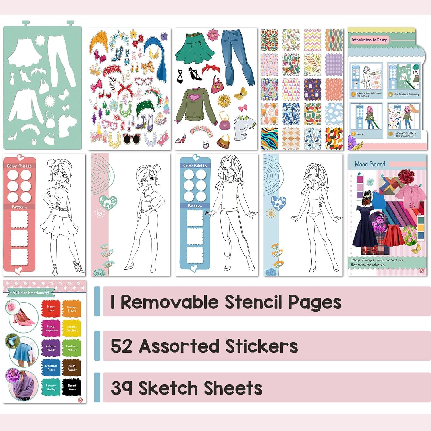 The included stencil features a variety of shapes and patterns that are easy for kids to trace and use, helping them create their very own fashion designs with ease and precision.
