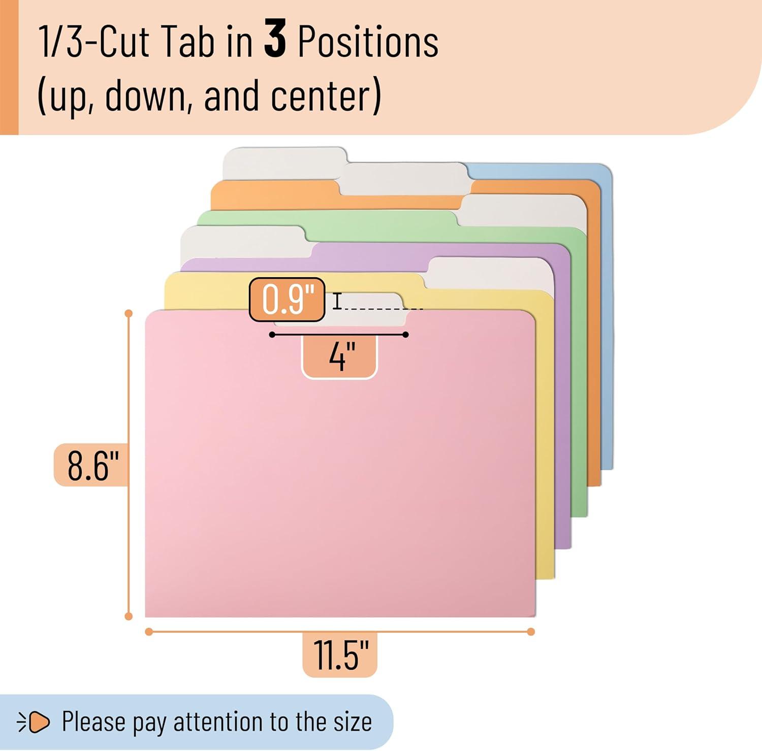 Mr. Pen- File Folders, 100 Pack, 1/3-Cut Tab, Manila, Letter Size, Office Supplies File Folders Bulk(Pastel Colors)