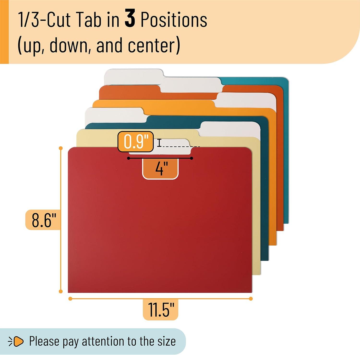Mr. Pen- File Folders, 100 Pack, 1/3-Cut Tab, Manila, Letter Size, Office Supplies File Folders Bulk(Retro Colors)