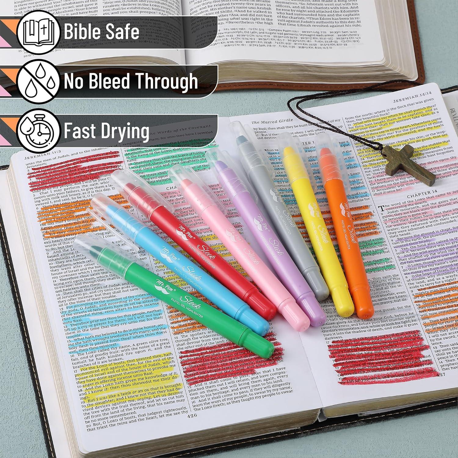 Mr. Pen- Gel Highlighter, 12 Pack, Morandi Colors, Bible Highlighters No Bleed, No Bleed Highlighters(Vibrant+Bible Color Coding+Guide)
