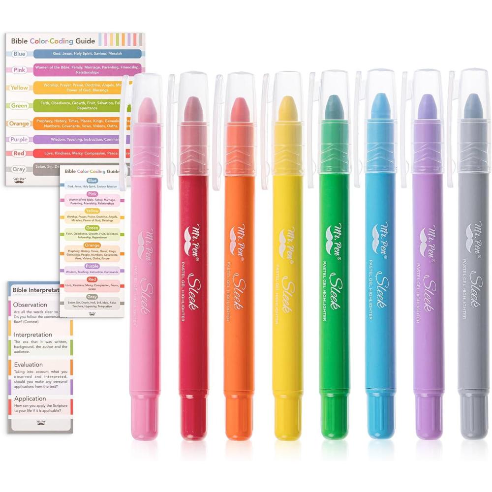 Dive into a world of Morandi highlighting with Mr. Pen no bleed gel highlighters, specifically designed for Bible pages but versatile enough for any document. This pack of 12 offers a delightful array of assorted colors to suit every mood and theme.