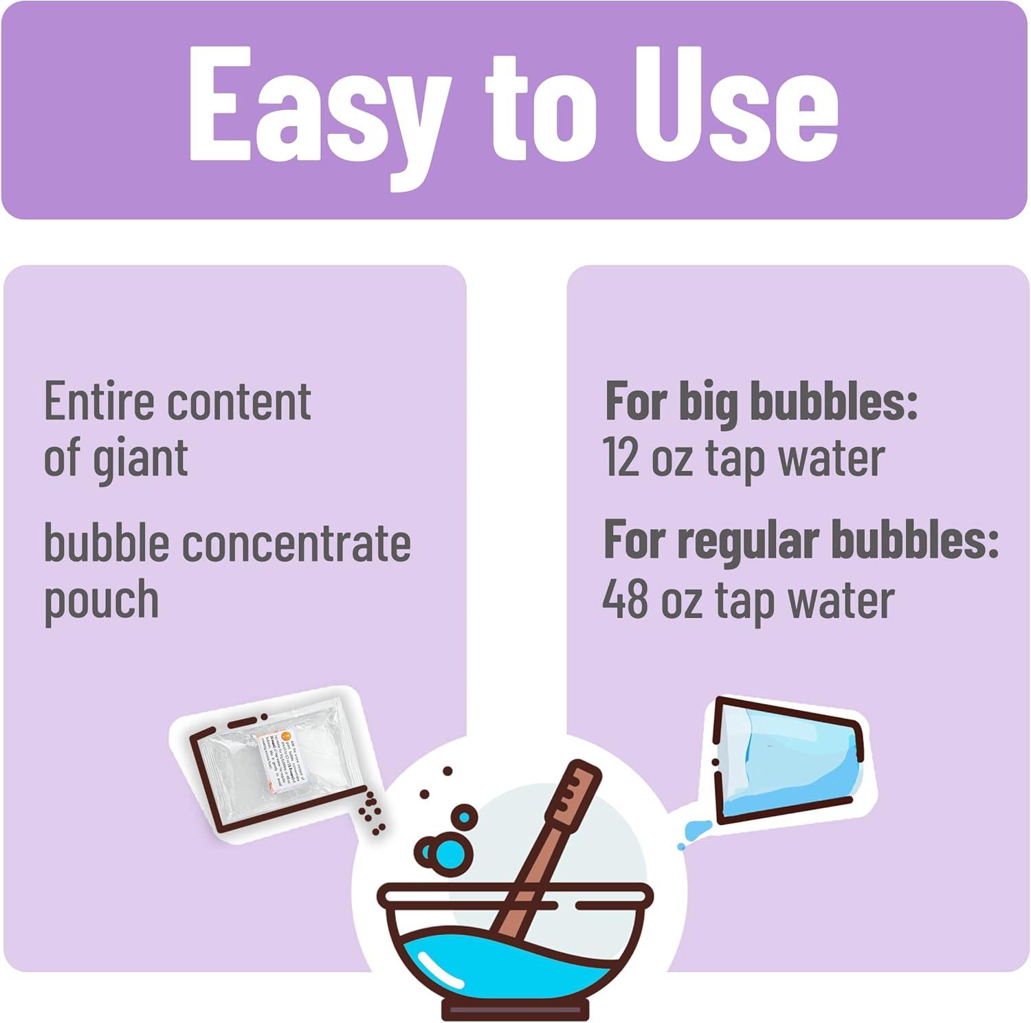 The giant bubble wand kit contains everything you need for making giant, colorful bubbles that are fun for children and adults alike. It includes a set of giant bubble maker, and 2 pouches of bubble concentrate, which is safe, non-toxic and environmentally friendly.