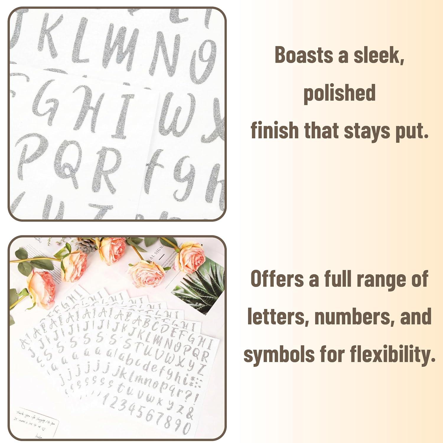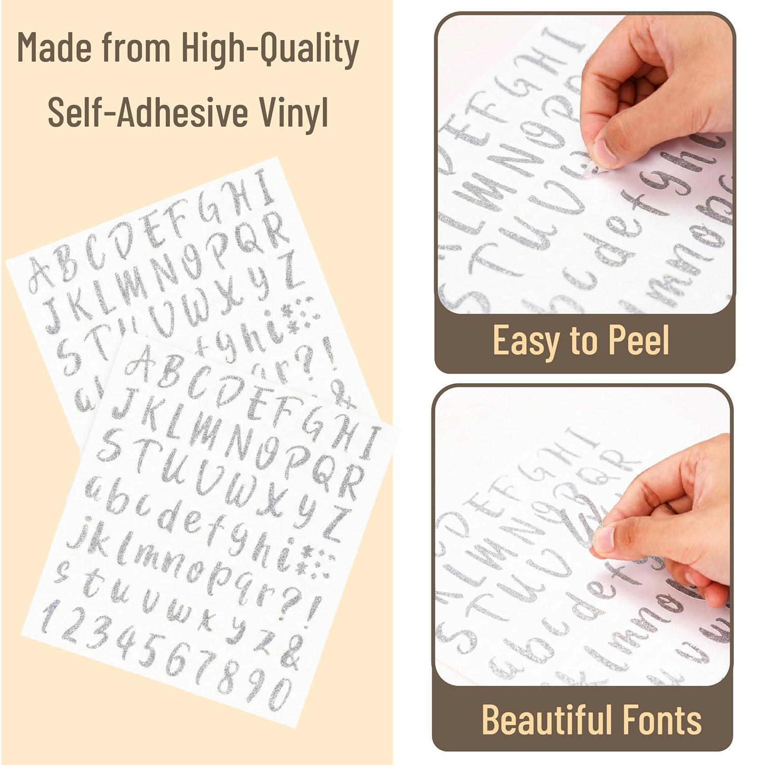 Mr. Pen- Glitter Letter Stickers, 1 Inch, 8 Sheets, 576 pcs, Silver, Self Adhesive Glitter Letters and Numbers, Vinyl Alphabet Stickers