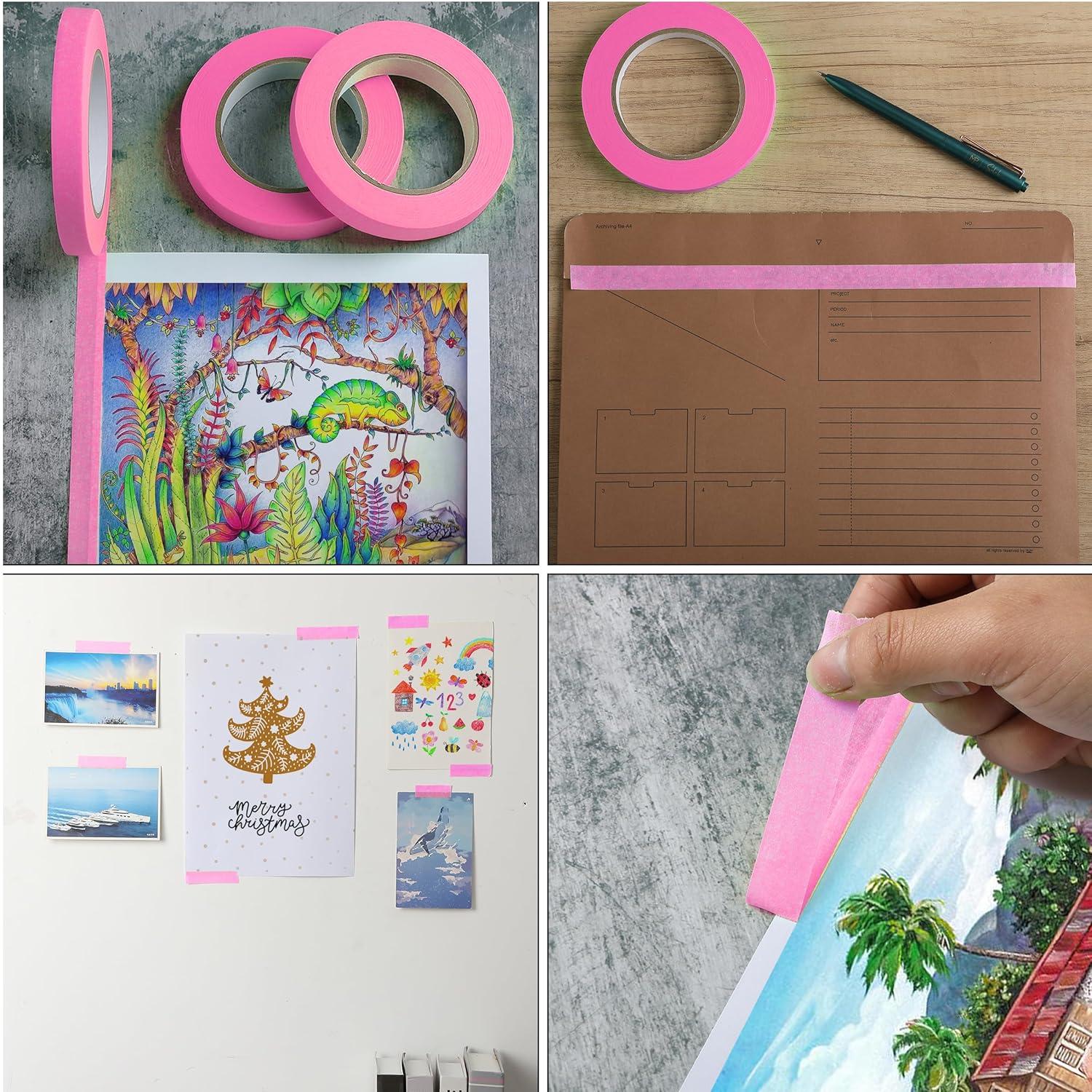 Mr. Pen- Green Masking Tape, 0.6 Inch Wide, 50 Meters/Roll, 3 Rolls, Green Painters Tape(Pink)