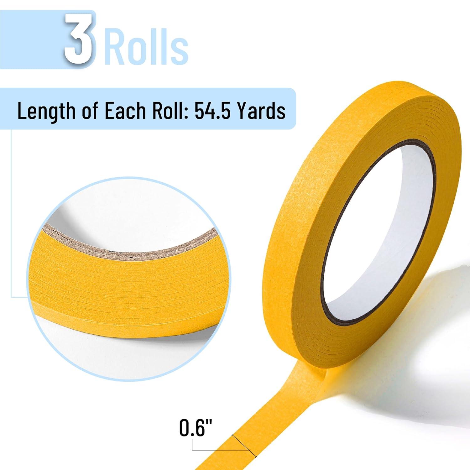 Mr. Pen- Green Masking Tape, 0.6 Inch Wide, 50 Meters/Roll, 3 Rolls, Green Painters Tape(Yellow)