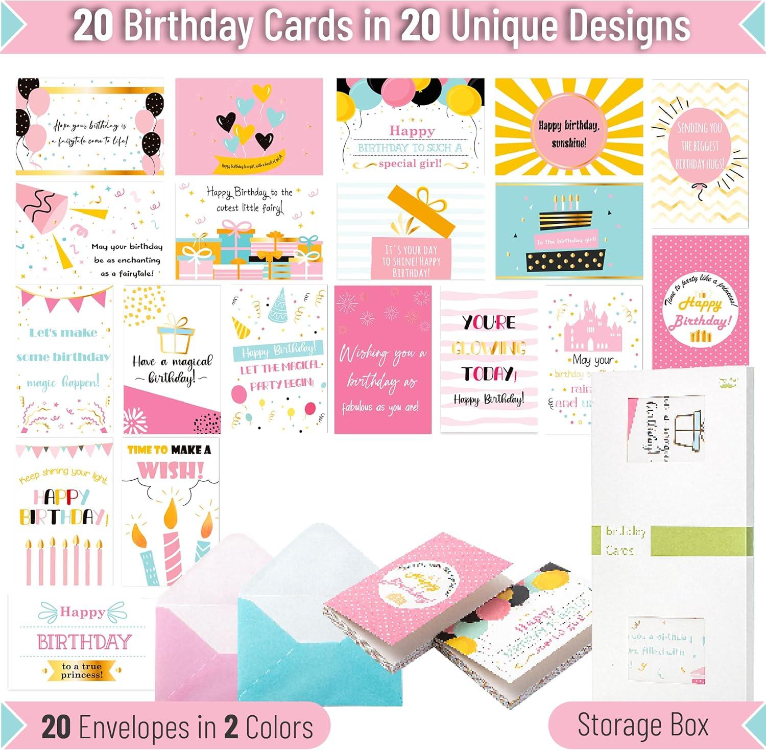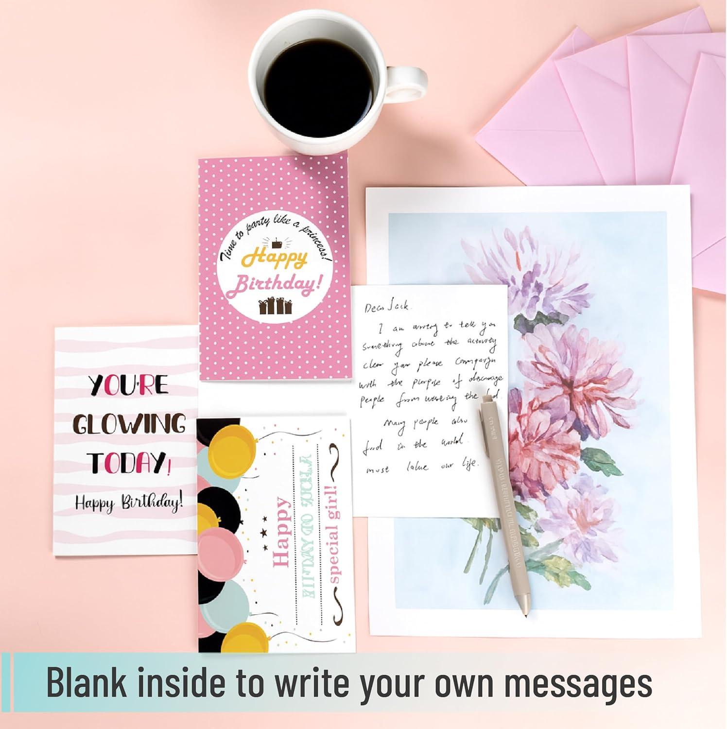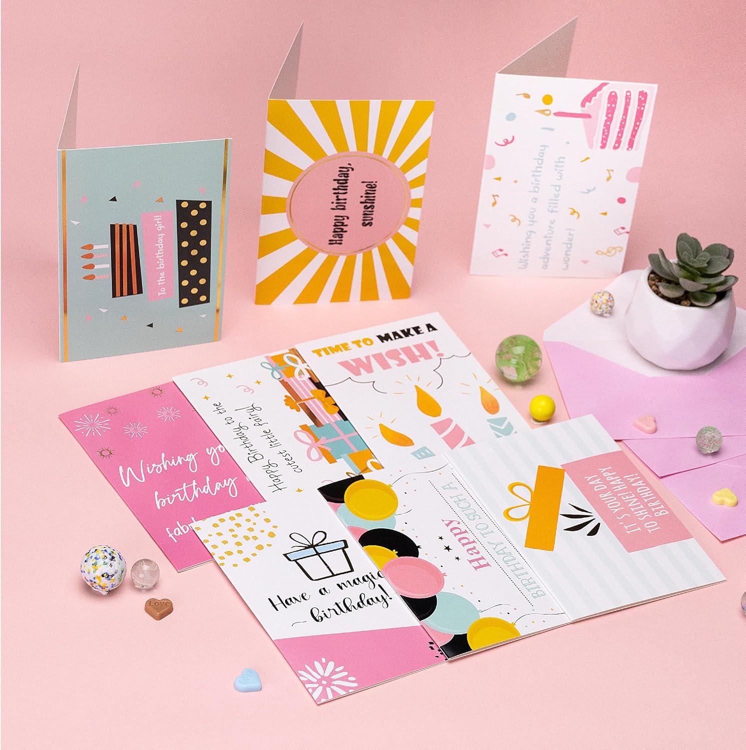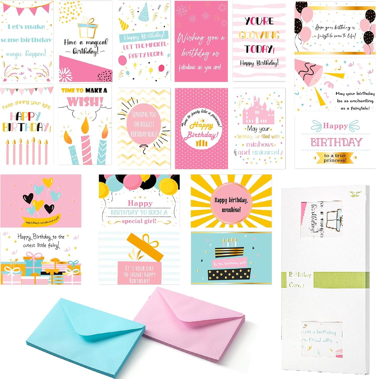 Mr. Pen- Happy Birthday Cards for Kids, 3.75″ x 5.2″, 48 Pack with Envelopes, 6 Colorful Animal Designs, Kids Birthday Card(Pretty Girl Birthday)