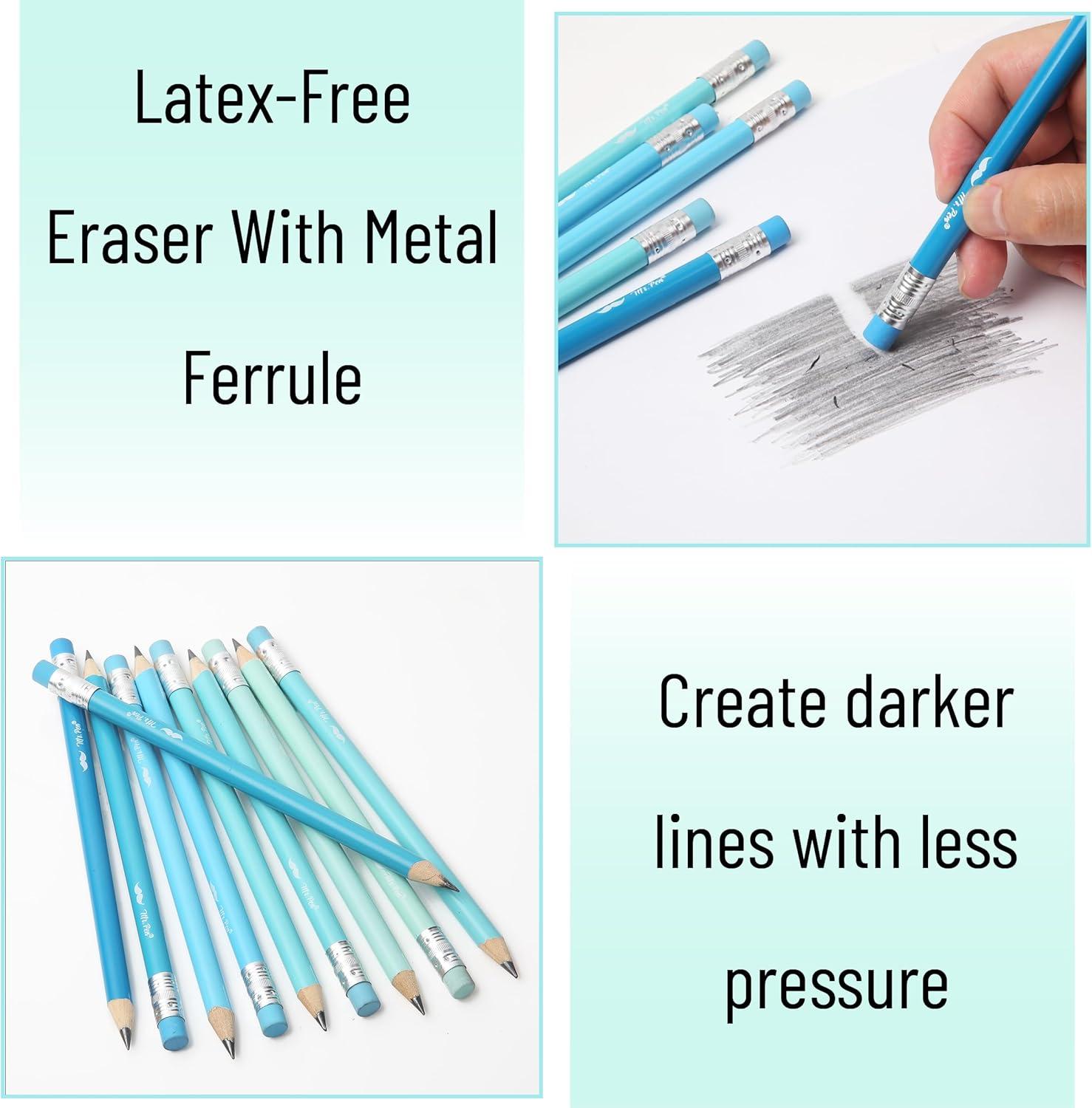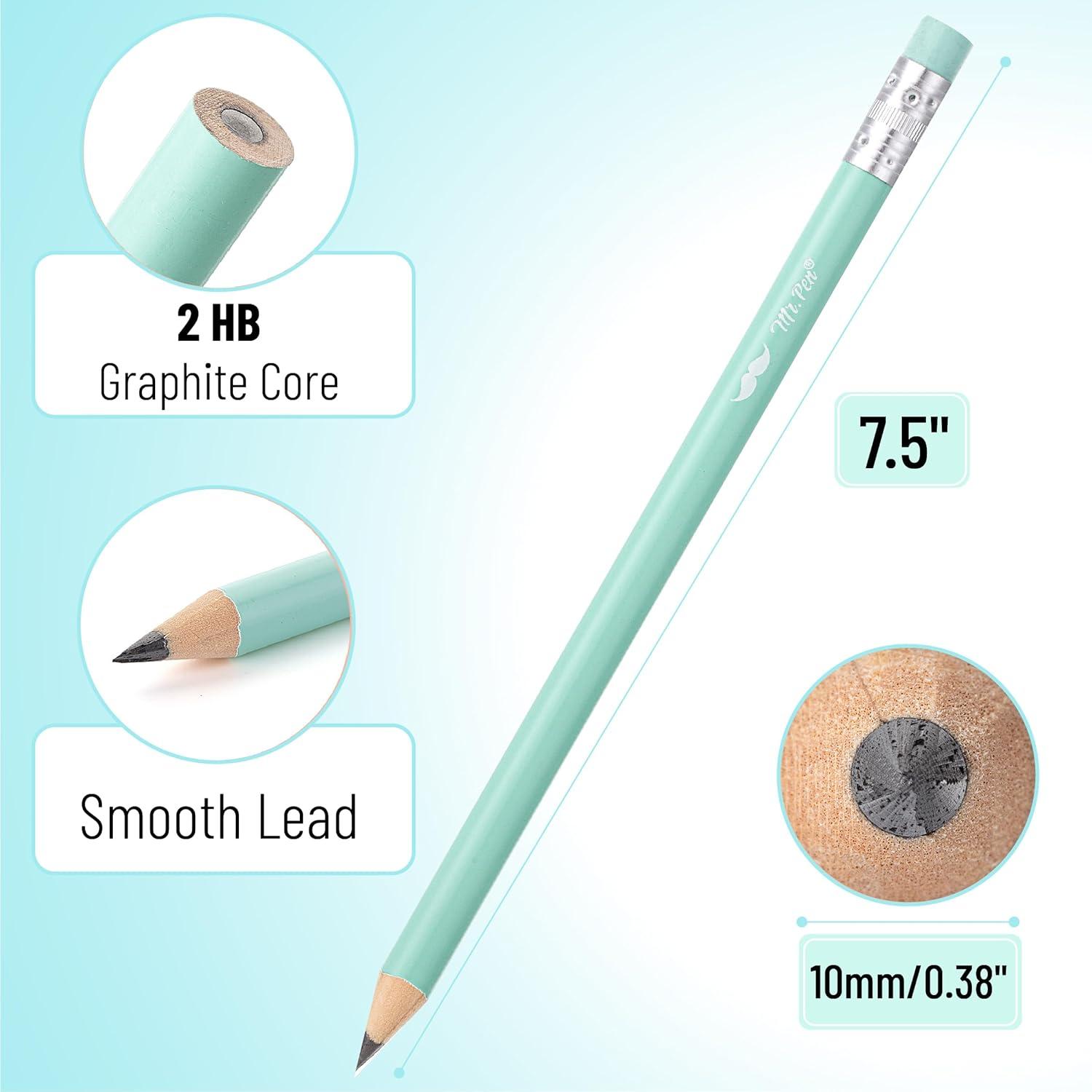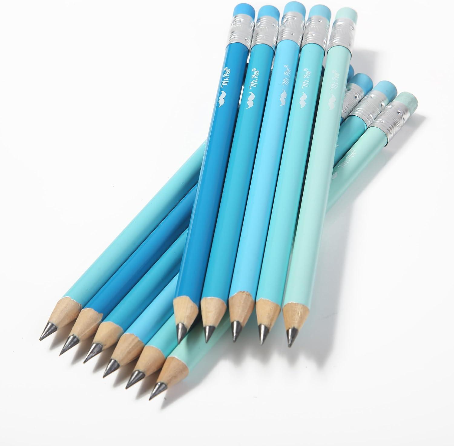 Mr. Pen- Jumbo Pencils, 60 pcs, Preschool Pencils, Large Pencil, Pastel Barrels and Black 2 HB Graphite Cores, Smooth Lead, Latex-Free Eraser Top with Metal Ferrule(Blue and Teal Barrels)