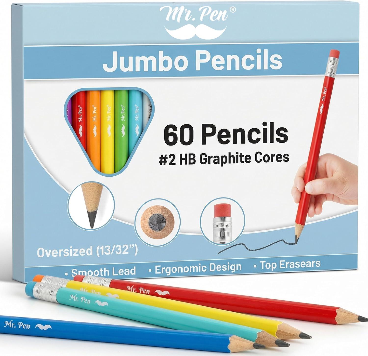 Mr. Pen jumbo pencils come in a set of 60, specifically designed for preschoolers and early learners who benefit from larger, easier-to-hold writing tools.