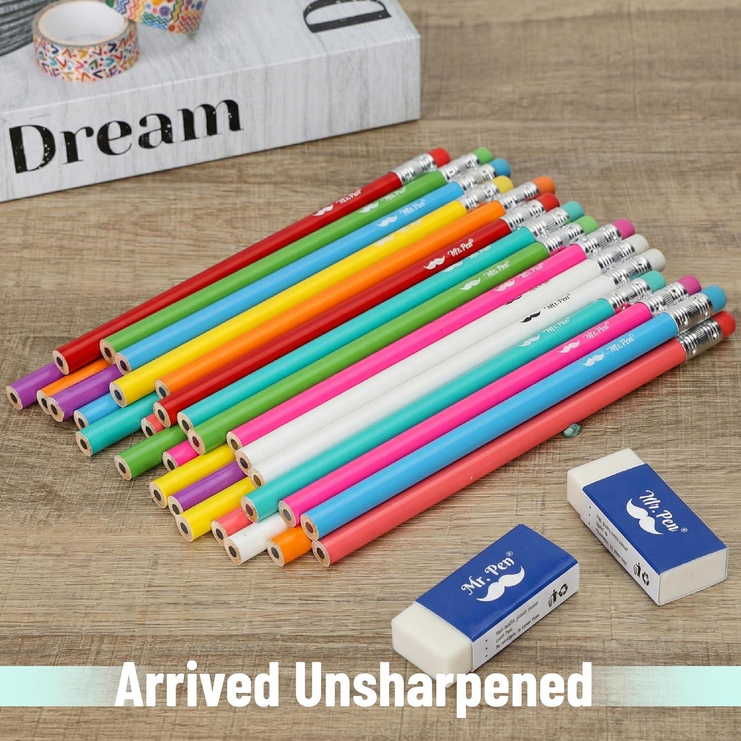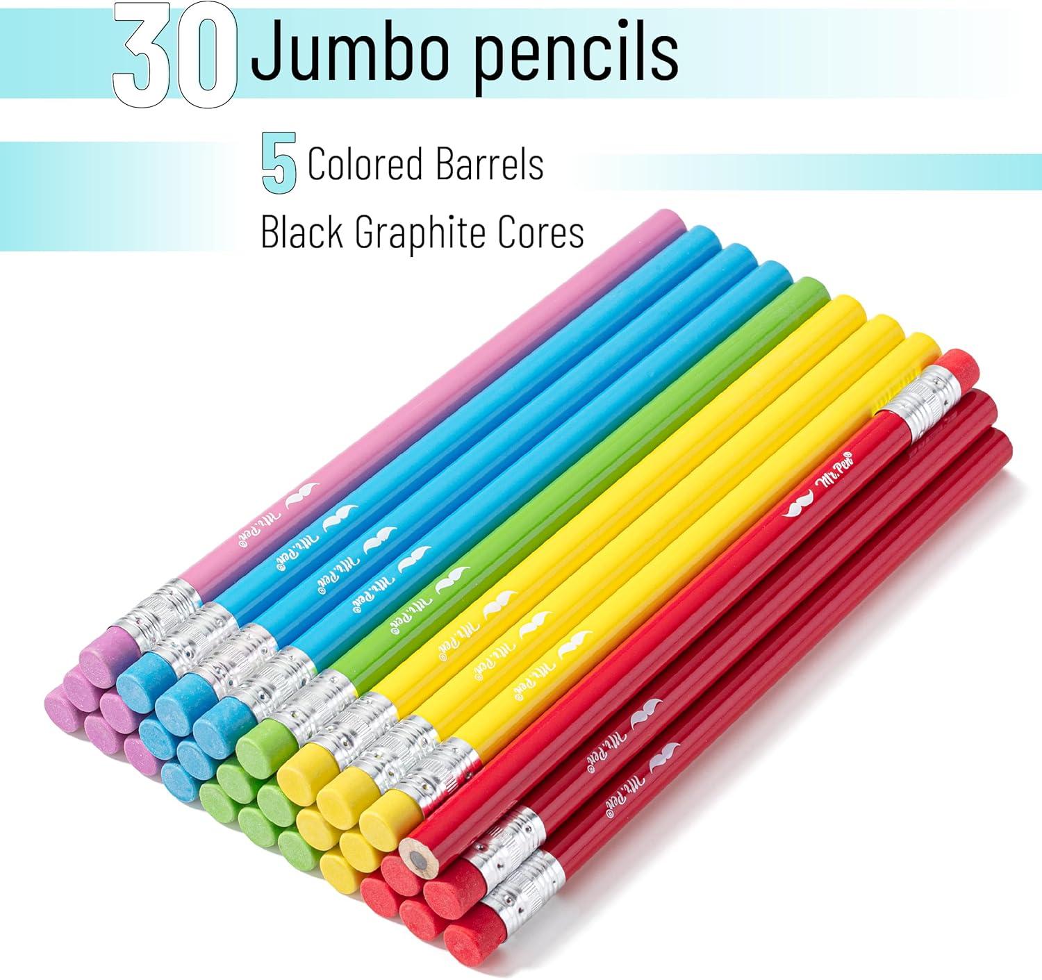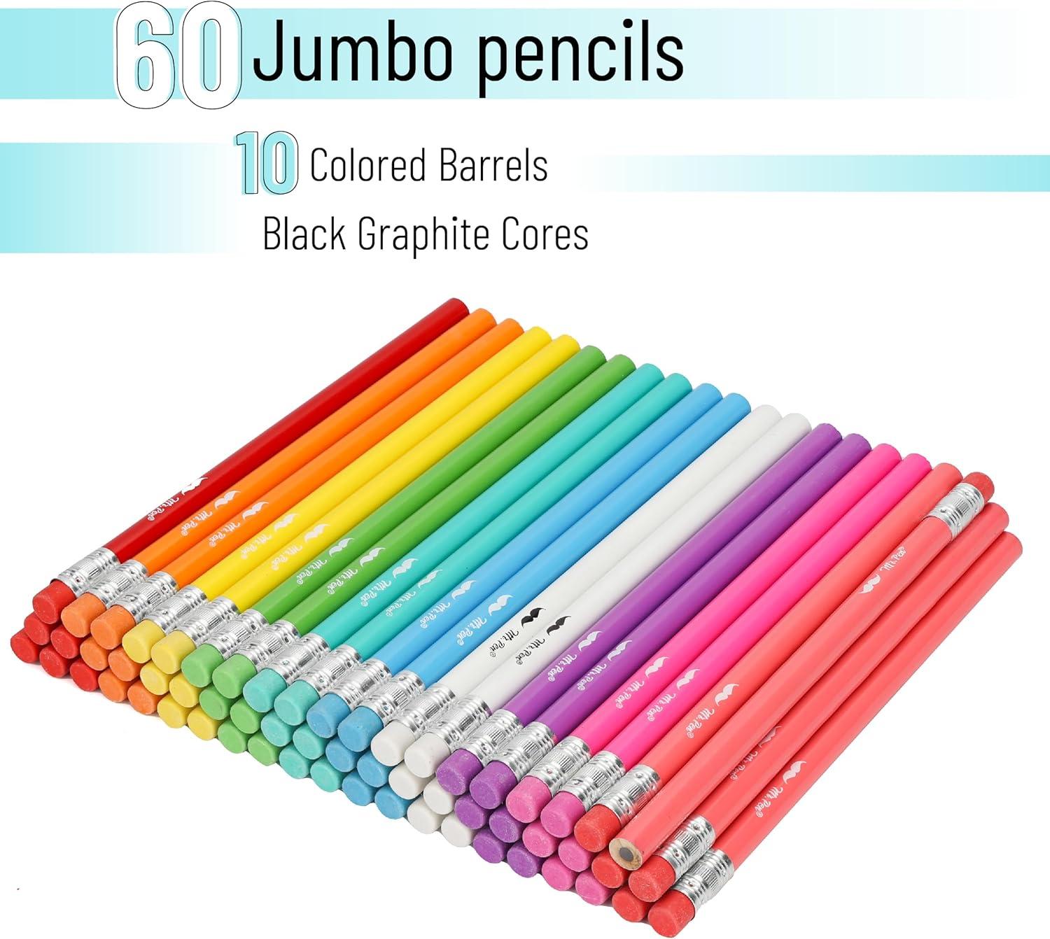 Mr. Pen- Jumbo Pencils, 60 pcs, Preschool Pencils, Large Pencil, Pastel Barrels and Black 2 HB Graphite Cores, Smooth Lead, Latex-Free Eraser Top with Metal Ferrule(Bright Barrels)