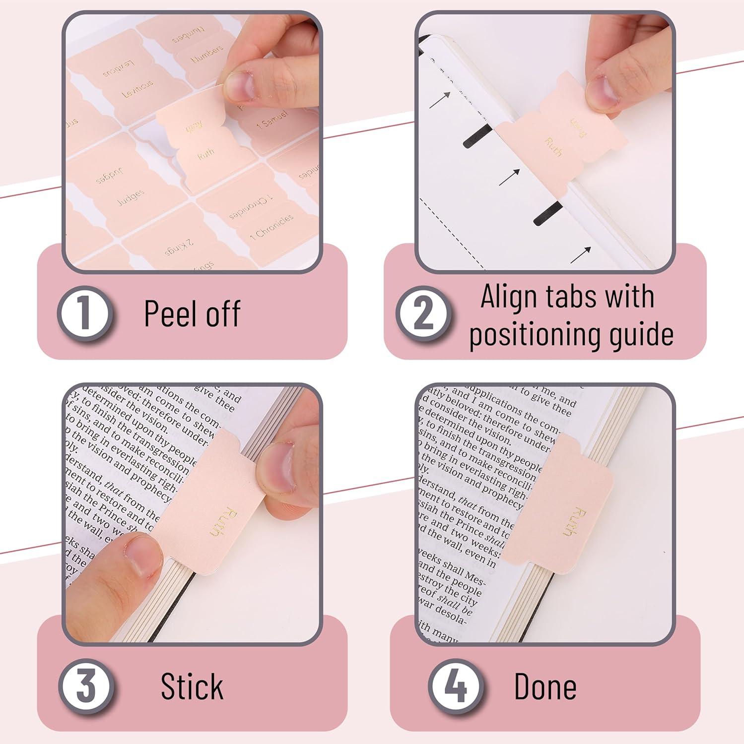 With the provided alignment guide, applying Bible indexing tabs has never been easier. These pre-cut tabs are designed to be quickly and easily folded for your convenience.