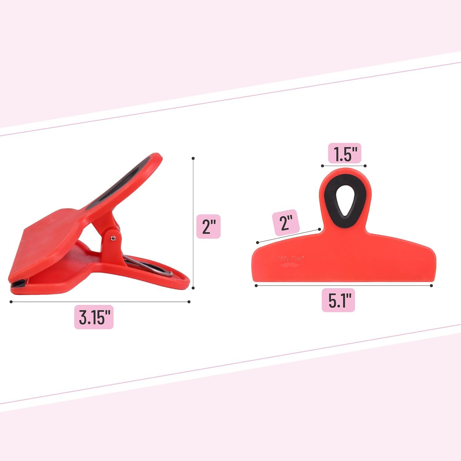 Mr. Pen- Magnetic Bag Clips, 4 Pack, 5 Inches Wide, Pink Shades, Heavy Duty, Clips for Food Packages, Chip Bag Clip for Fridge(Red)