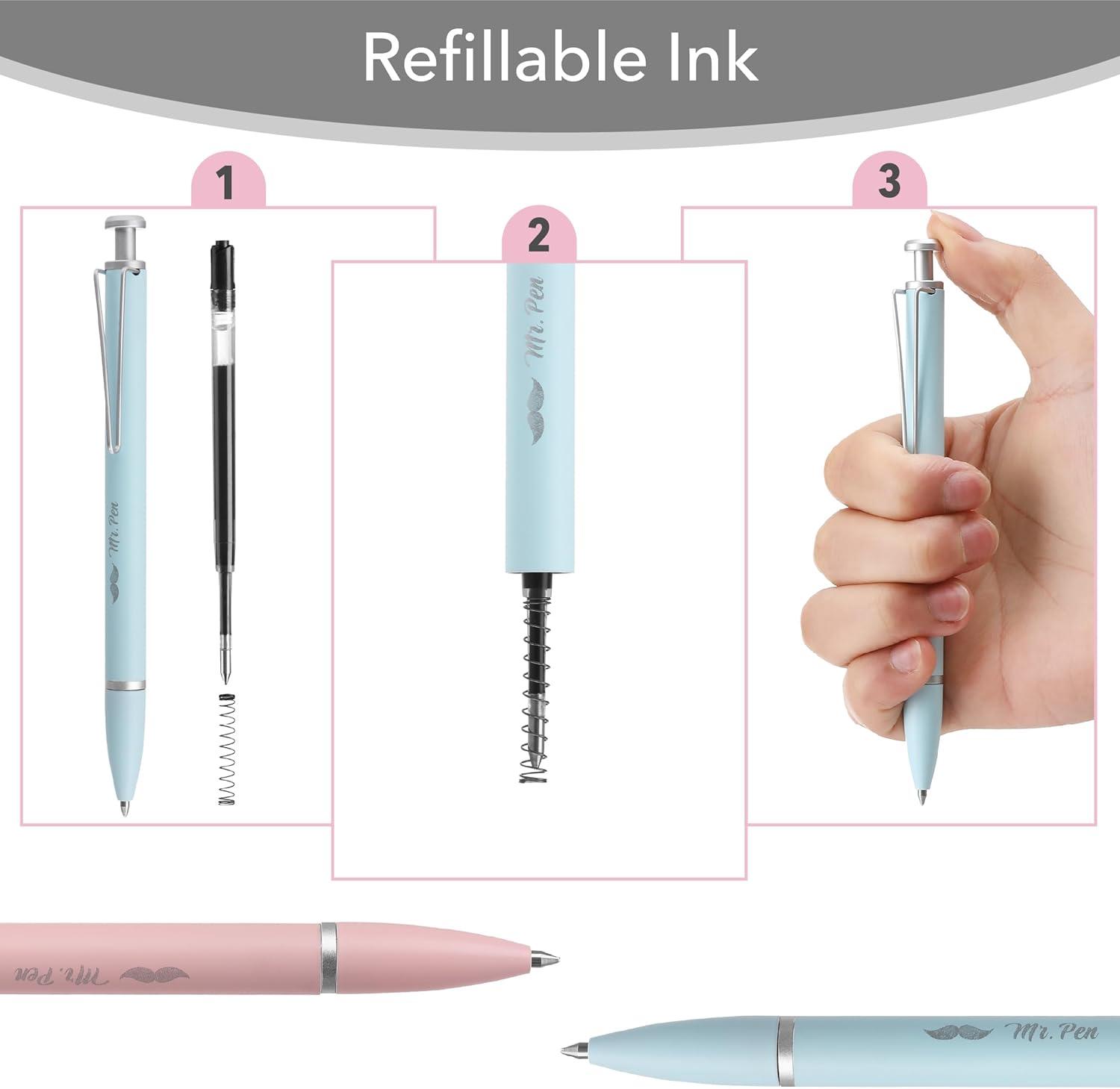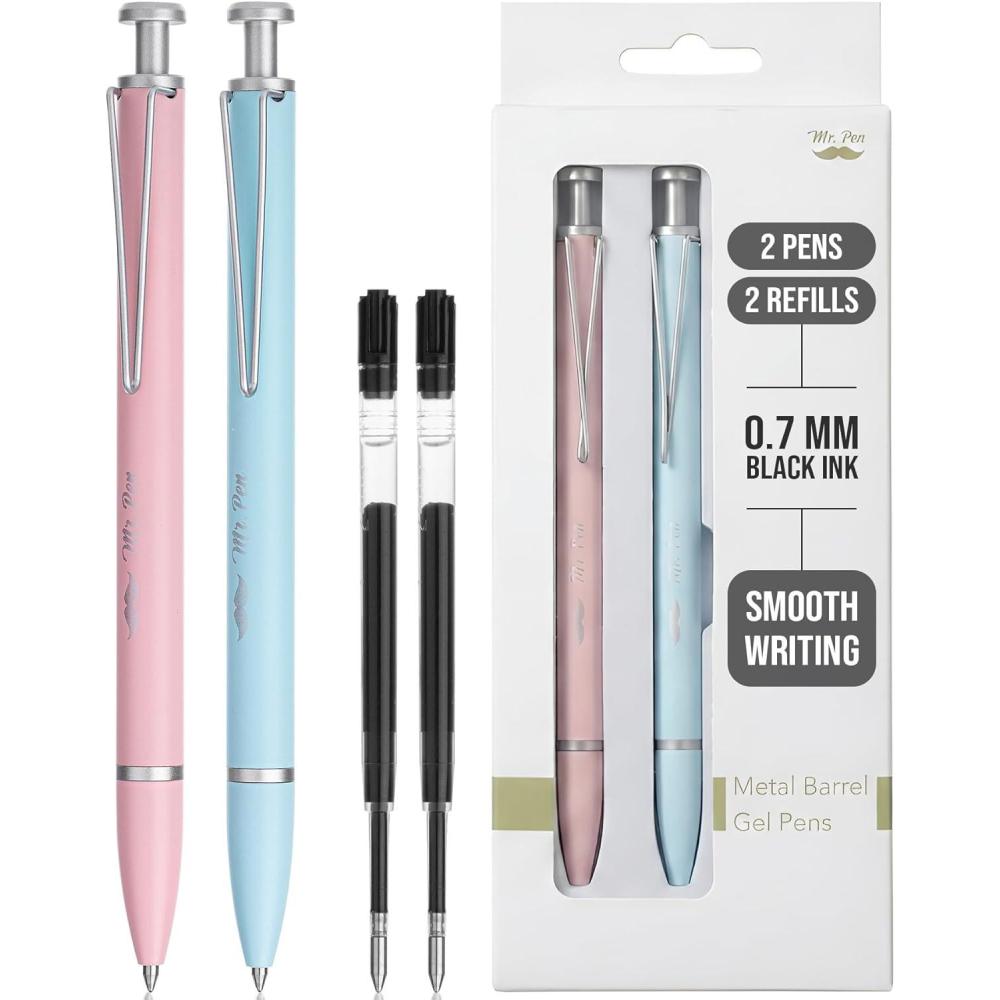 Mr. Pen metal retractable gel pen set includes 2 sleek pens and 2 refills, offering a smooth and dependable writing experience.