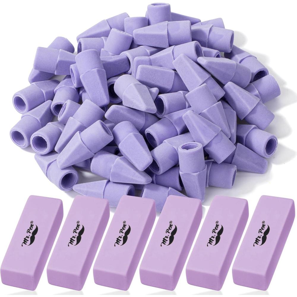 Mr. Pen- Pencil Erasers Set, 66 Pack, Colorful, Latex-Free, No Smudge(Purple)