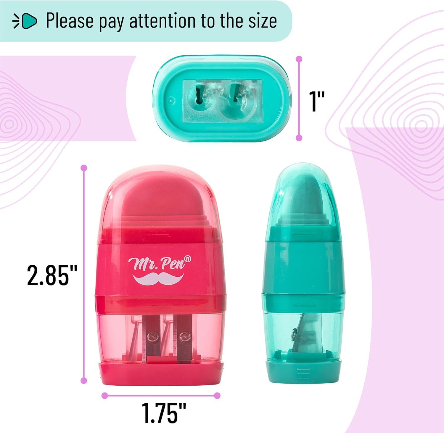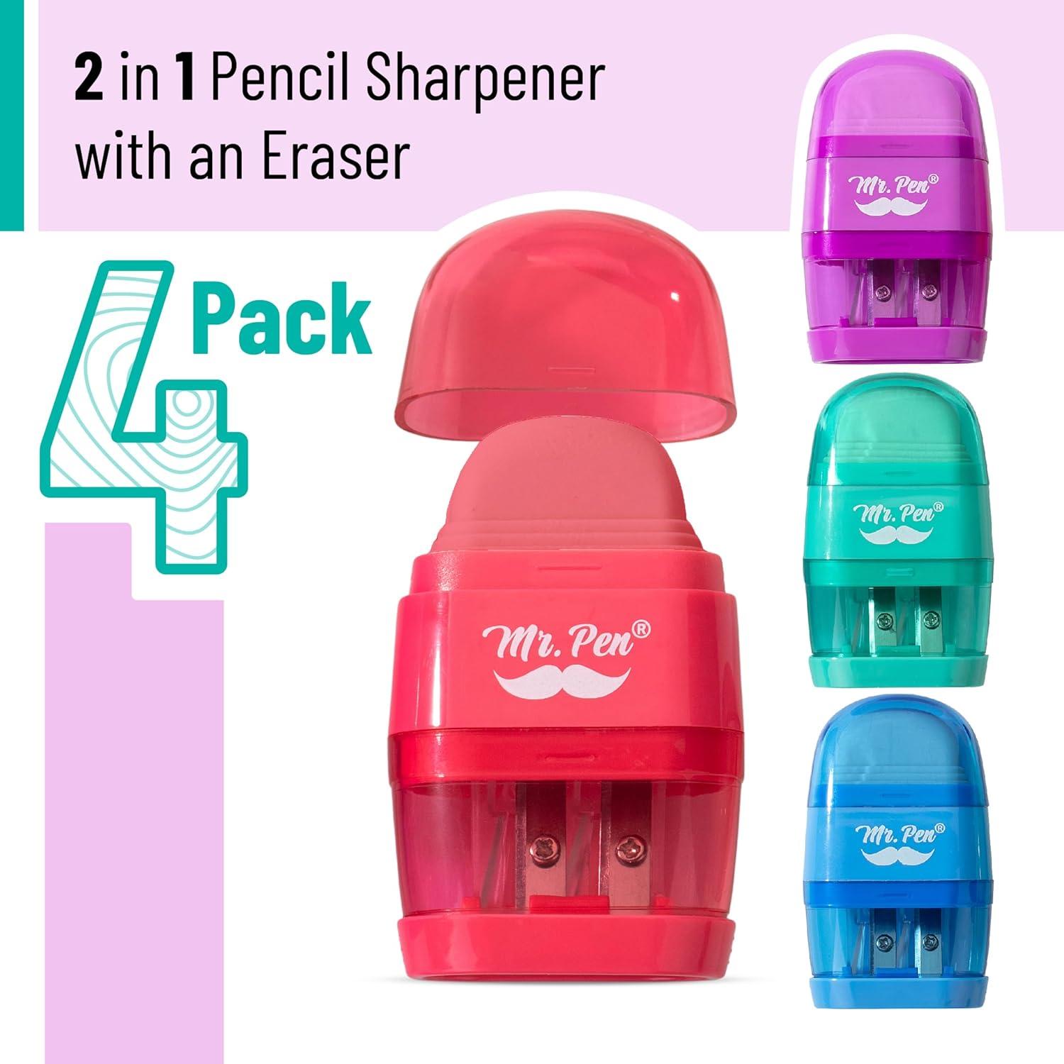 Mr. Pen pencil sharpener and eraser set comes in a convenient pack of 8, each featuring two sharpening holes to fit both standard and jumbo-sized pencils.