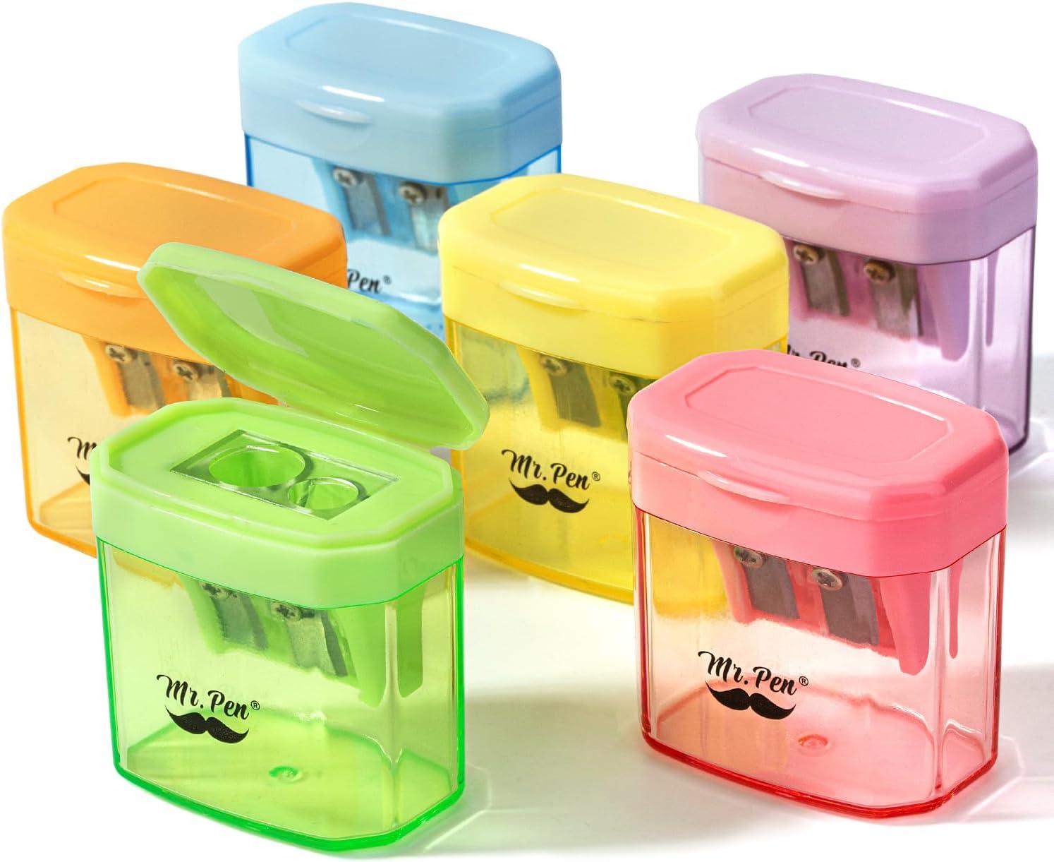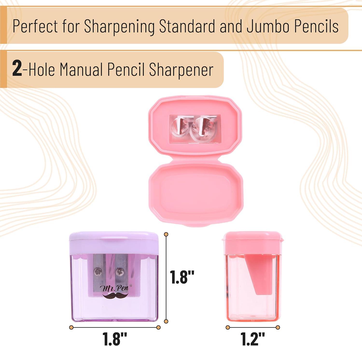 Mr. Pen- Pencil Sharpeners Manual, 6 Pack, Dual Hole, Colored Pencil Sharpener Manual(Multicolor)