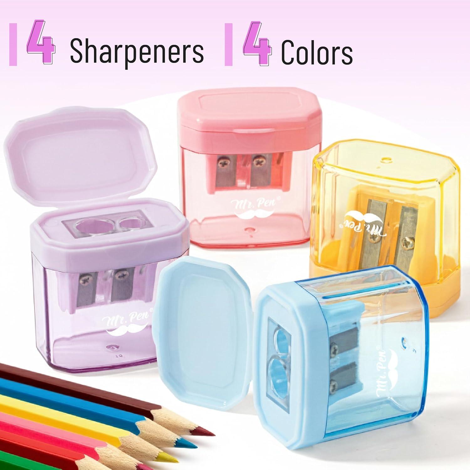 Mr. Pen- Pencil Sharpener & Eraser, 8 Pack, Bright Colors, 2 Sharpening Holes, Handheld Pencil Sharpener(Bright Colors)