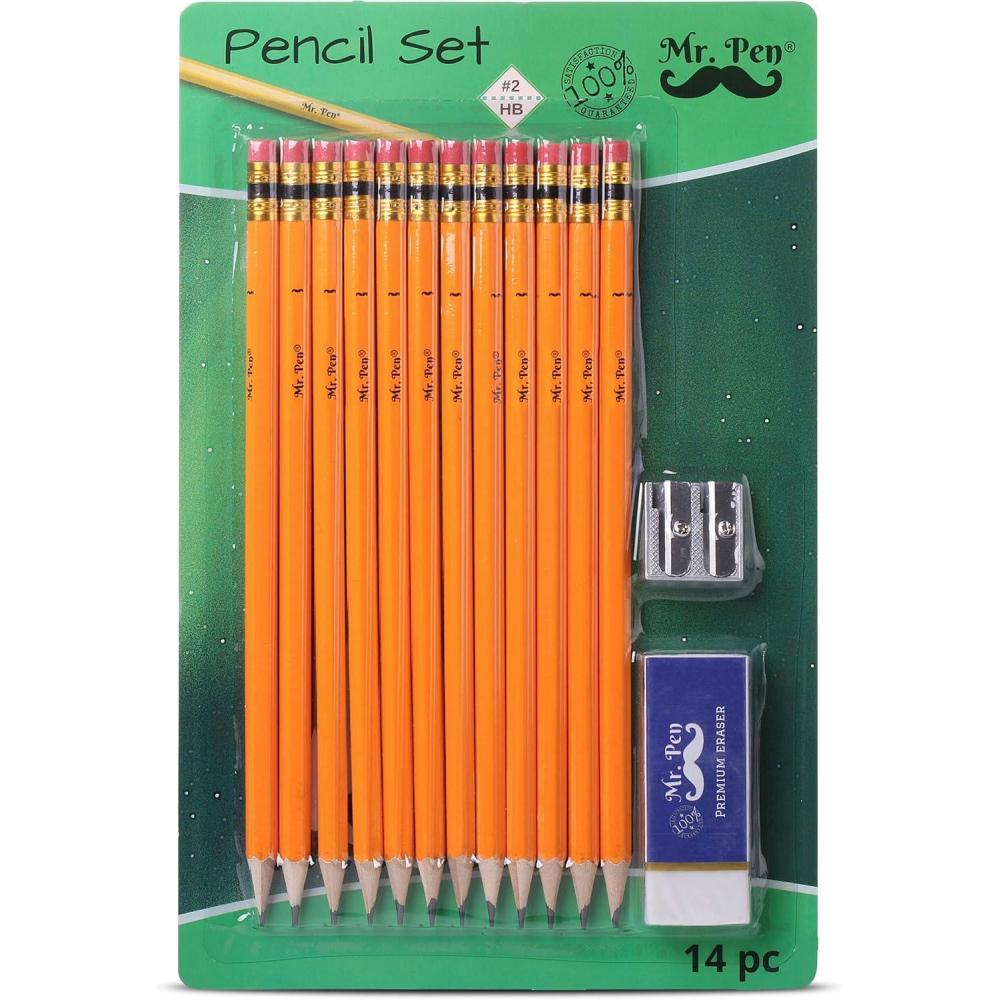 Package Includes: 12 #2HB Pencils 7”, 1 Metal Pencil Sharepners 2 hole, 1 White Large Erasers