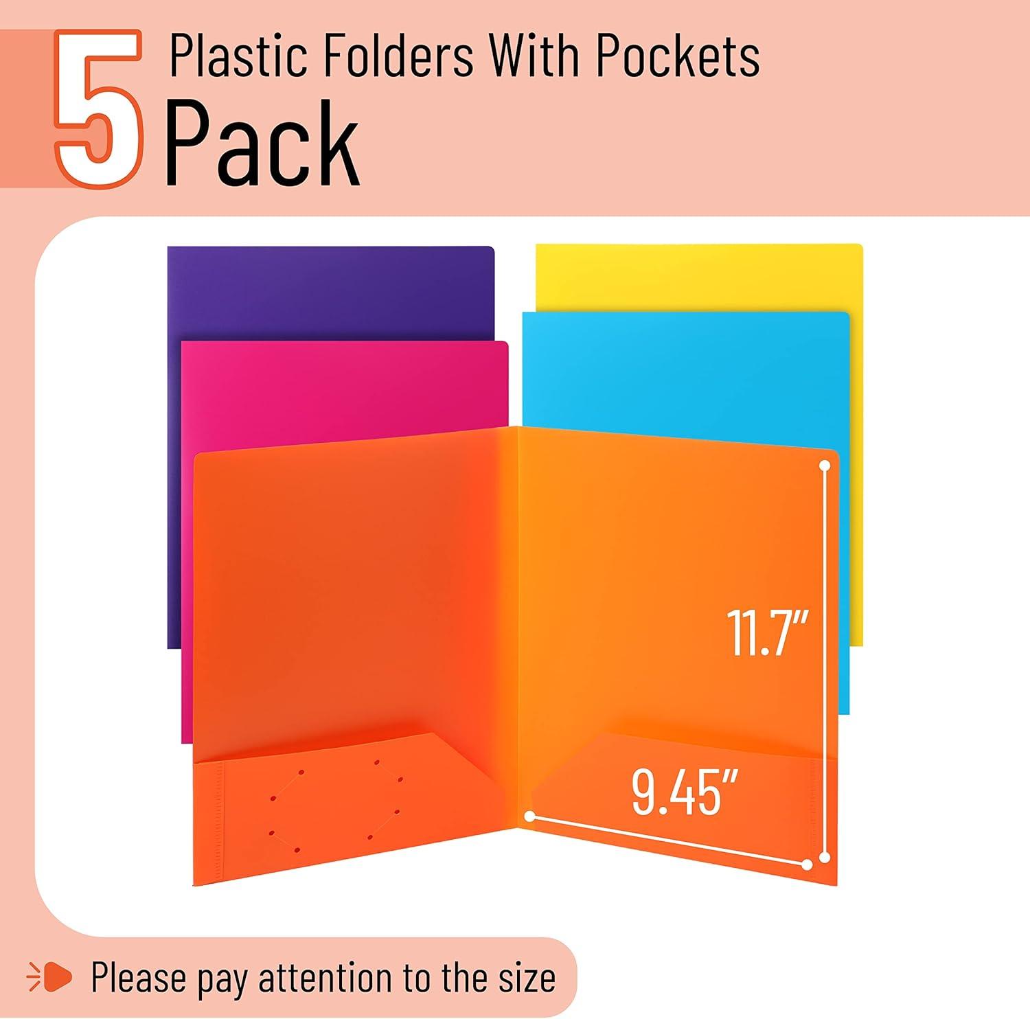 • Mr. Pen plastic folders with pockets come in a convenient 5-pack, featuring vibrant, eye-catching colors that make organizing your documents simple and stylish.